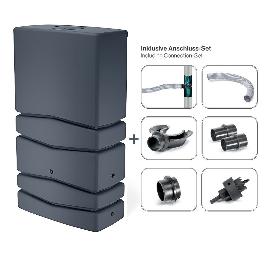 ELEGANTES DESIGN - Der Tank fügt sich mit der hochwertigen, glatten Optik in Hellgrau oder Anthrazit harmonisch in Ihr Ambiente ein, mit 30 cm Abstand an der Hauswand (empfohlen).