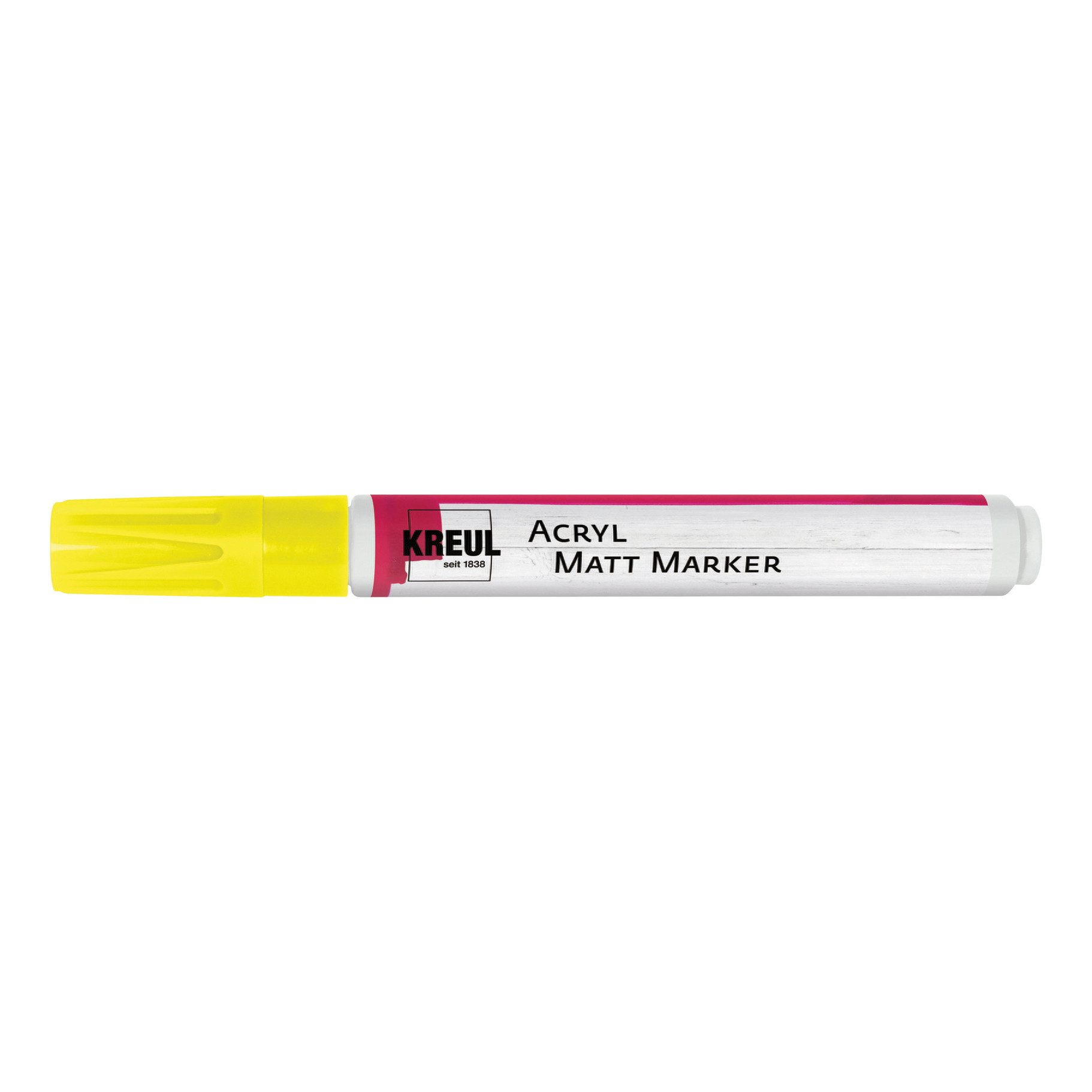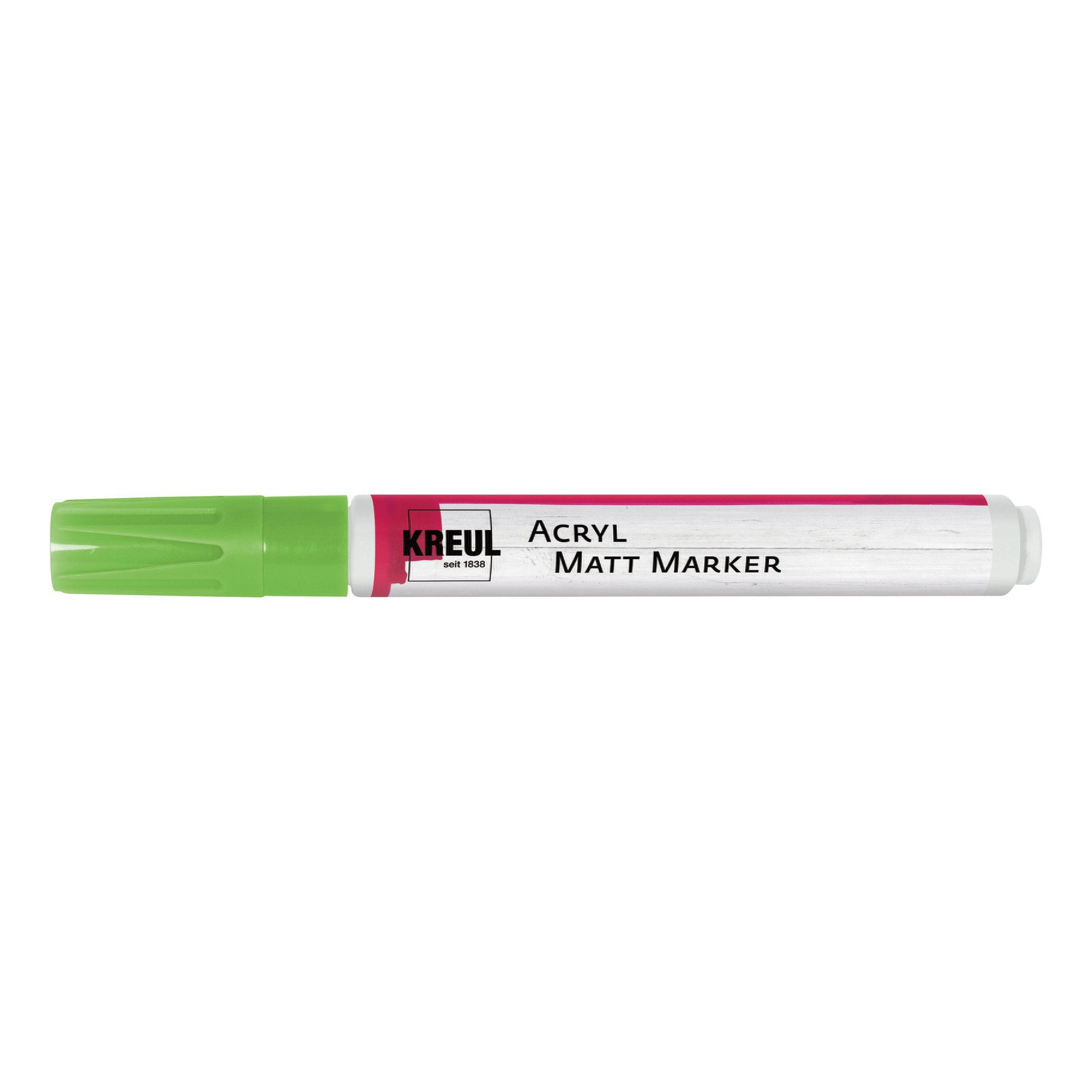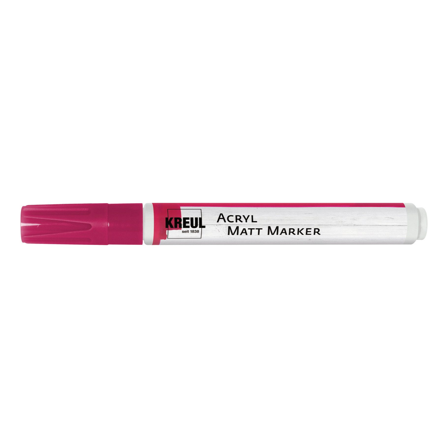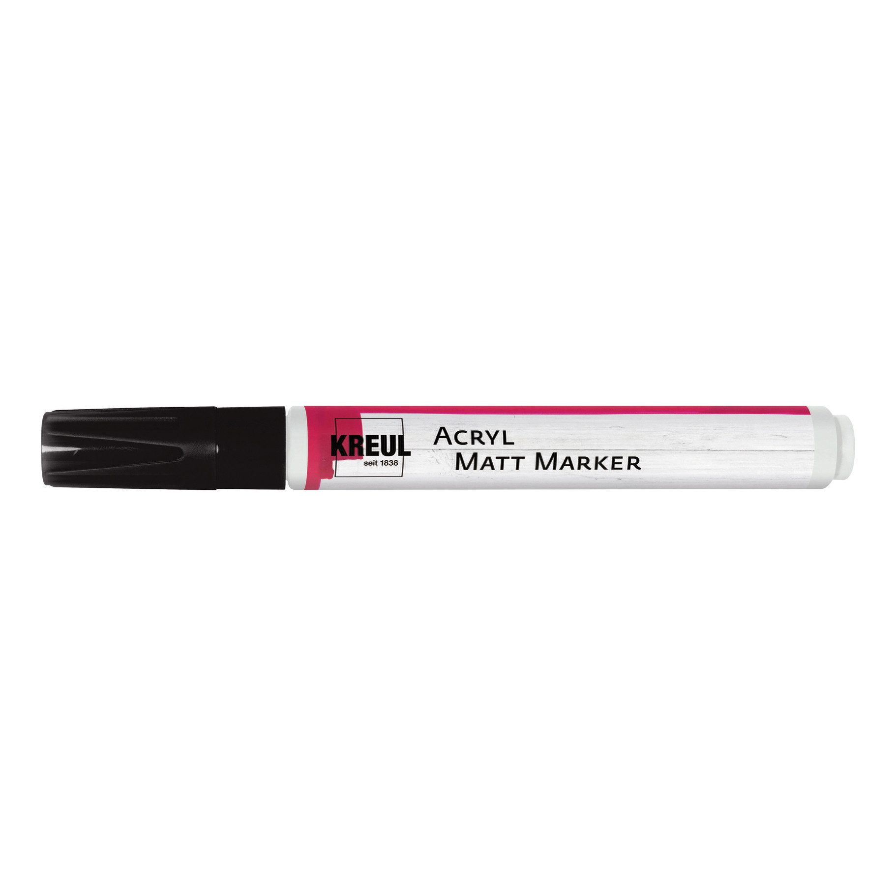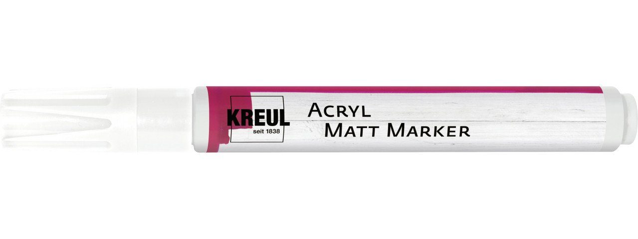 Der KREUL Acryl Matt Marker verfügt über eine Rundspitze der Strichstärke von ca. 2-4 mm. Die Acrylfarbe ist auf Wasserbasis und deckend, matt, lichtecht und wasserfest. Der Matt Marker eignet sich zum Bemalen von Papier, Holz, Styropor, Karton, Folie, Kunststoff, Glas, Terrakotta, Ton, Metall, Gummi und durchgetrocknetem Beton. Das Ventilsystem des Markers garantiert exakten und gleichmäßigen Tintenfluss.