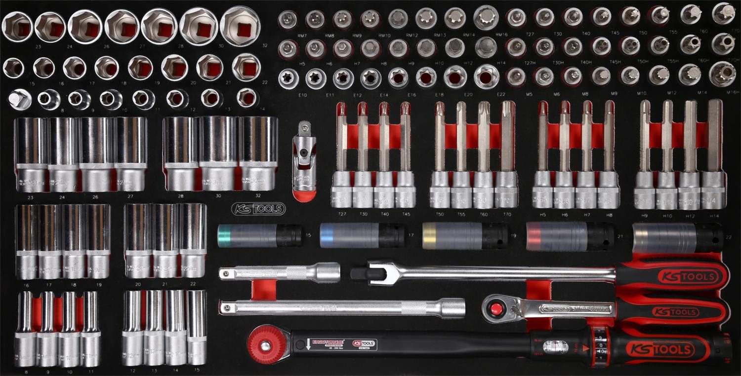 KS Tools Werkzeugwagen 1/2" Steckschlüssel-Satz in Schaumstoffeinlage, 120-tlg