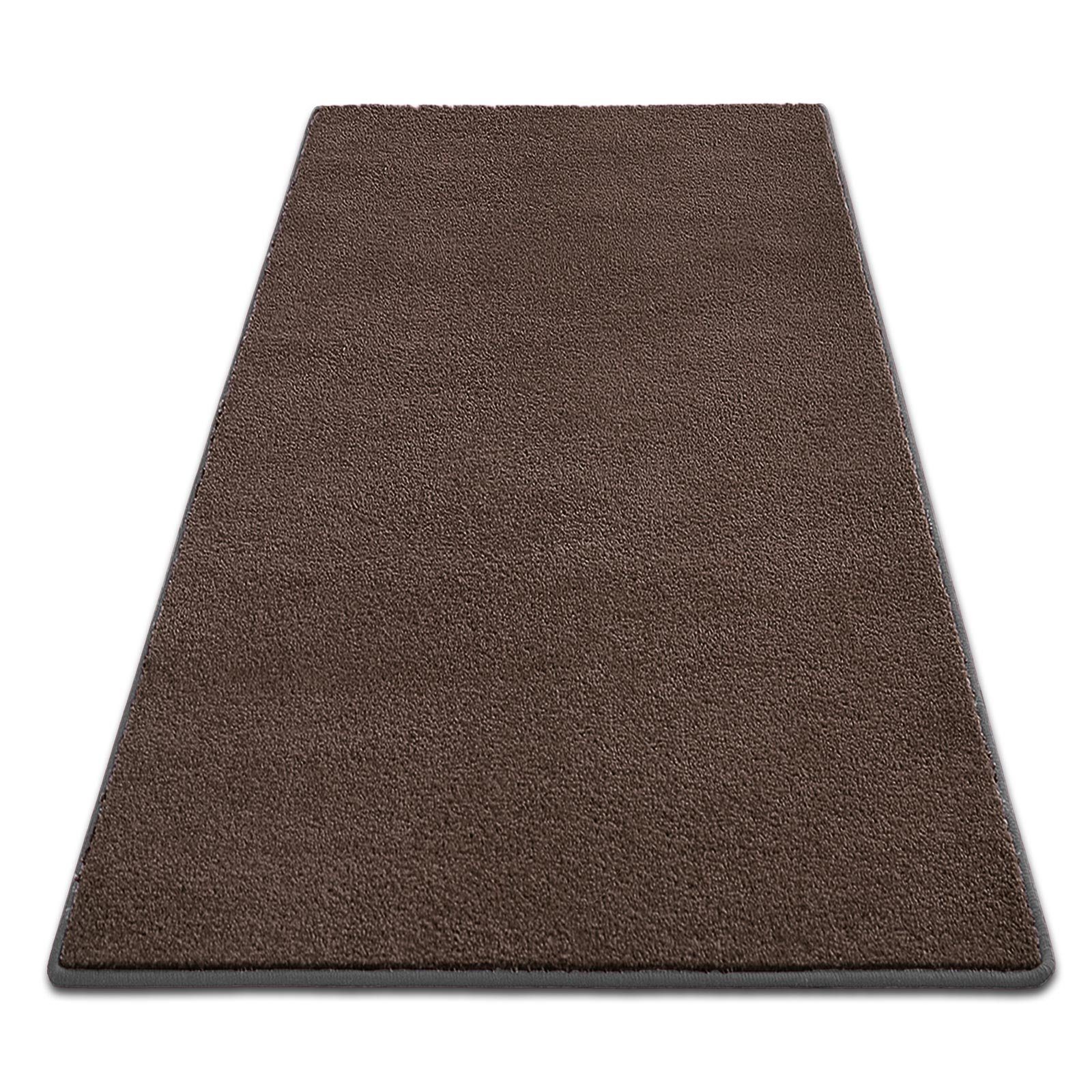 Die modischen, in verschiedenen Farben erhältlichen Velours-Teppiche besitzen einen strapazierfähigen Flor aus Polypropylen, der sich nicht nur ausgesprochen angenehm anfühlt, sondern auch überaus pflegeleicht ist. Die Rückseite besteht aus langlebigem Filz. Ein farblich passend gekettelter Rand aus robustem Kunstgarn sorgt für Formstabilität und bietet Schutz vor unerwünschtem Ausfransen.