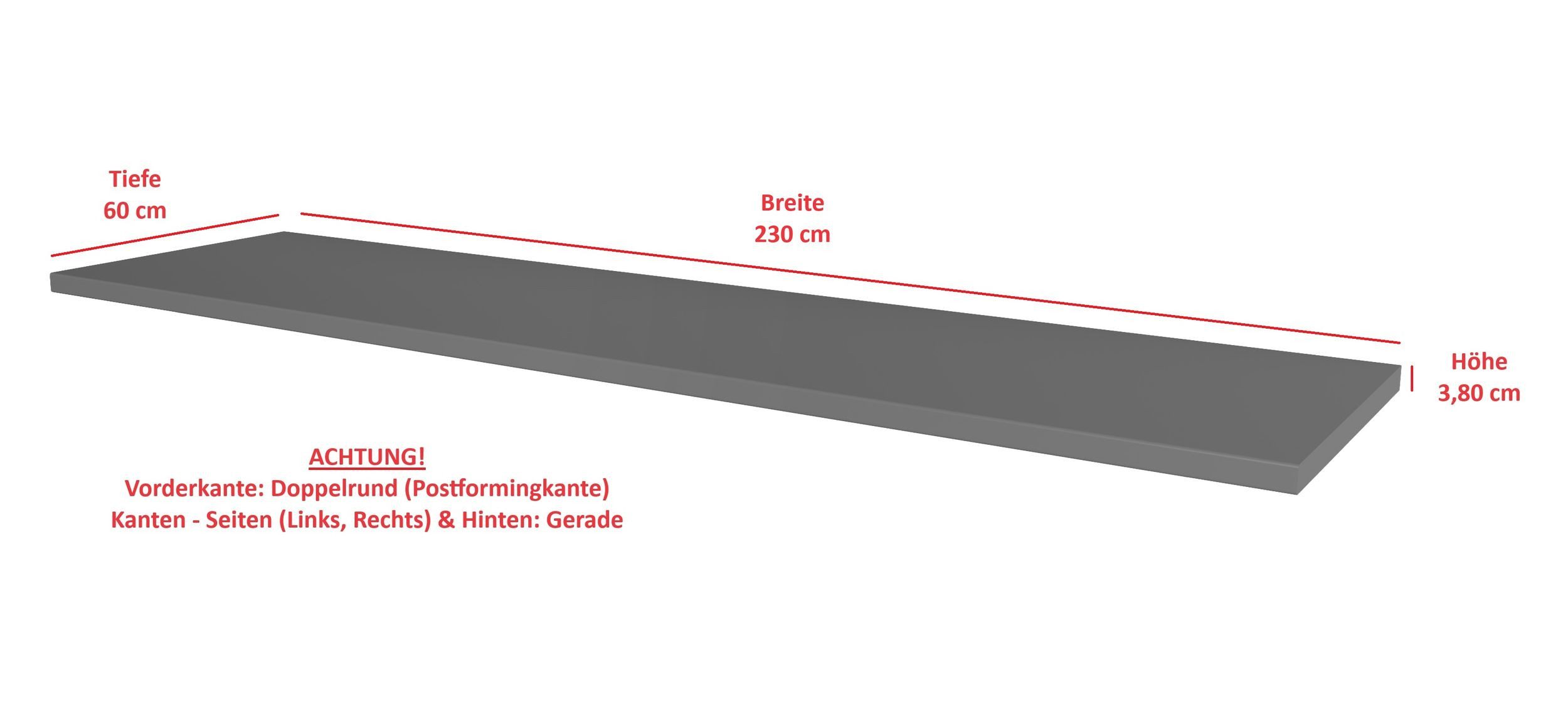 Wir bieten hier zu unseren Küchenprogrammen Nessa, Scandi, Old Style, Ava-AR, Luna eine Küchen Arbeitsplatte 230 cm in Anthrazit matt an.