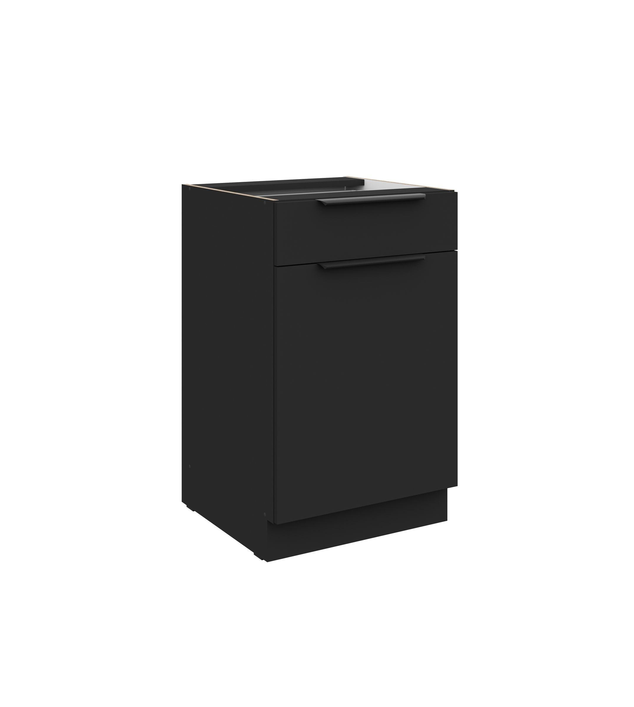 Unterschrank 50 cm mit einem Schubkasten und einer Tür, mit Einlegboden und ohne Arbeitsplatte.