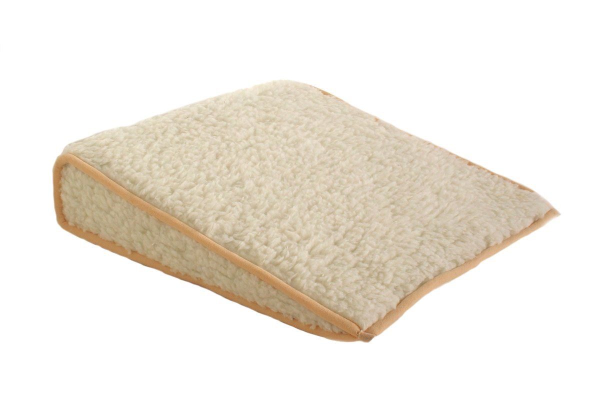 Unser orthopädisches Schurwoll-Keilkissen sieht sehr viel wohnlicher aus,