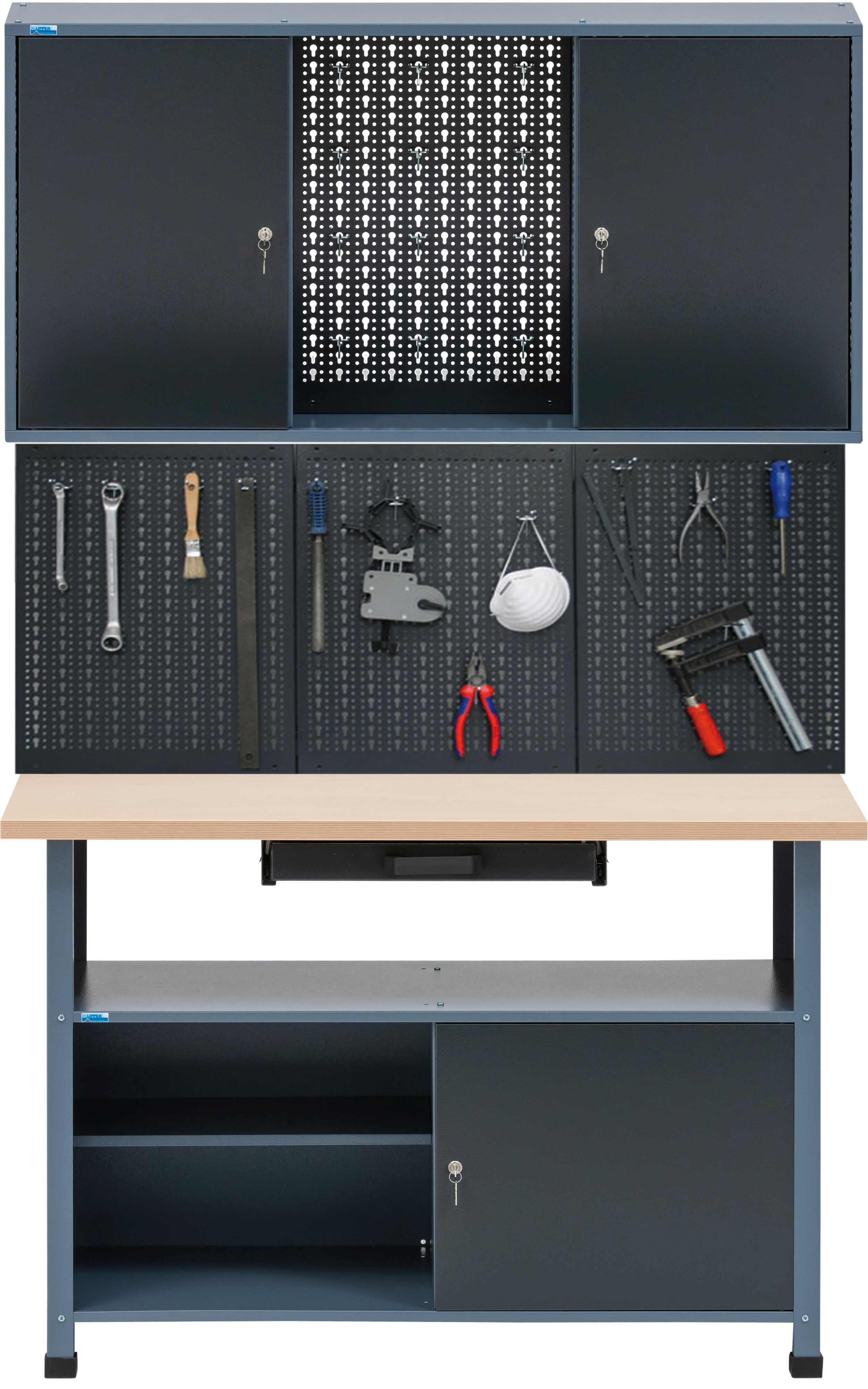 Küpper Aktionsset 14135 – Komplettlösung für Ihre Werkstatt! Das Küpper Aktionsset 14135 bietet Ihnen eine perfekt abgestimmte Werkstatteinrichtung, die Funktionalität, Qualität und einen attraktiven Preis vereint. Mit einer Breite von 120 cm und einer robusten Buchenfurnierplatte als Arbeitsfläche ist dieses Set ideal für jeden Hobbyhandwerker.