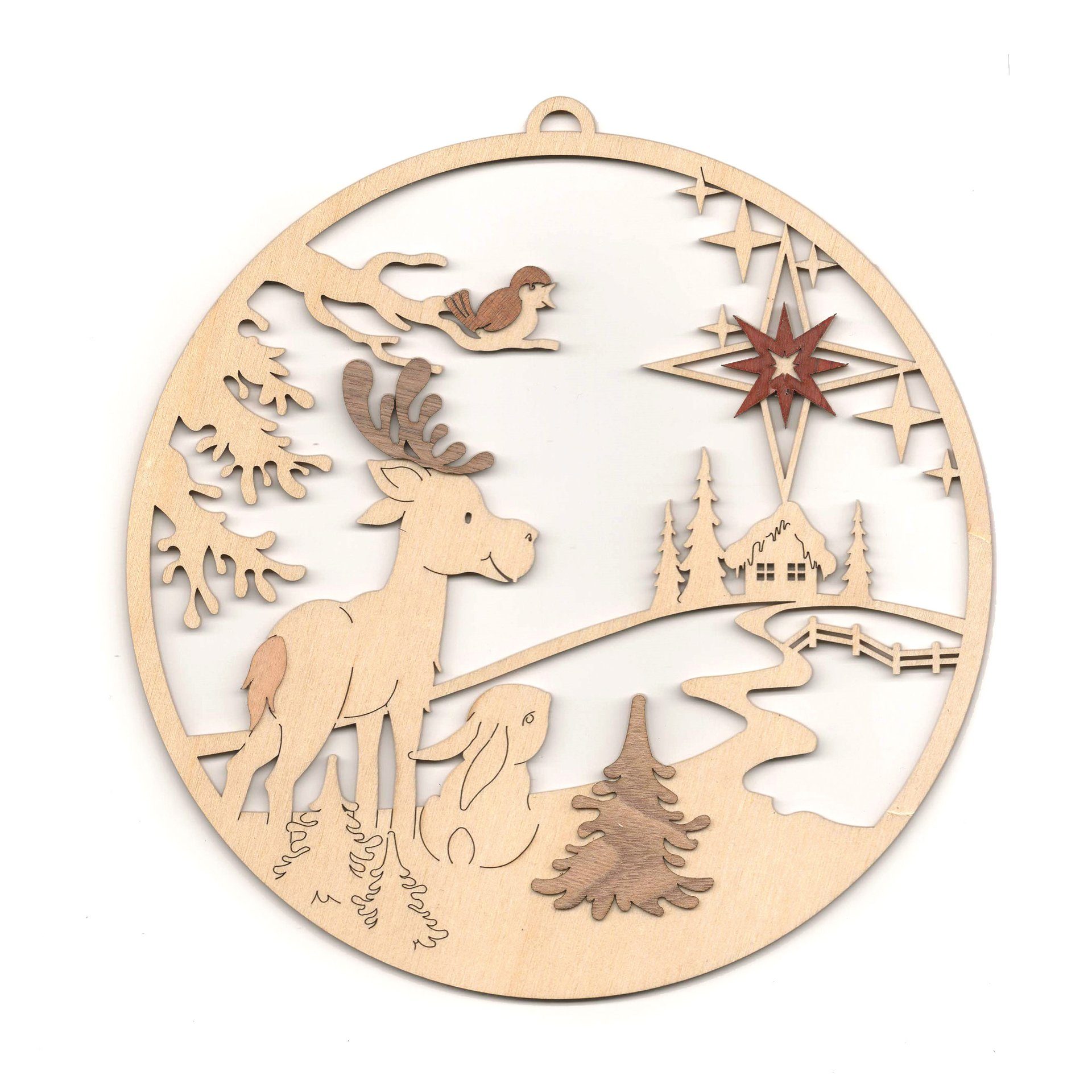 Das Fensterbild wurde aus feinem Birkensperrholz geschnitten. Aufgesetzte Applikationen aus Edelholzfurnieren verleihen dem Fensterbild räumliche Tiefe und Struktur. Eine Zierde für jeden Betrachter - egal ob von innen oder außen.