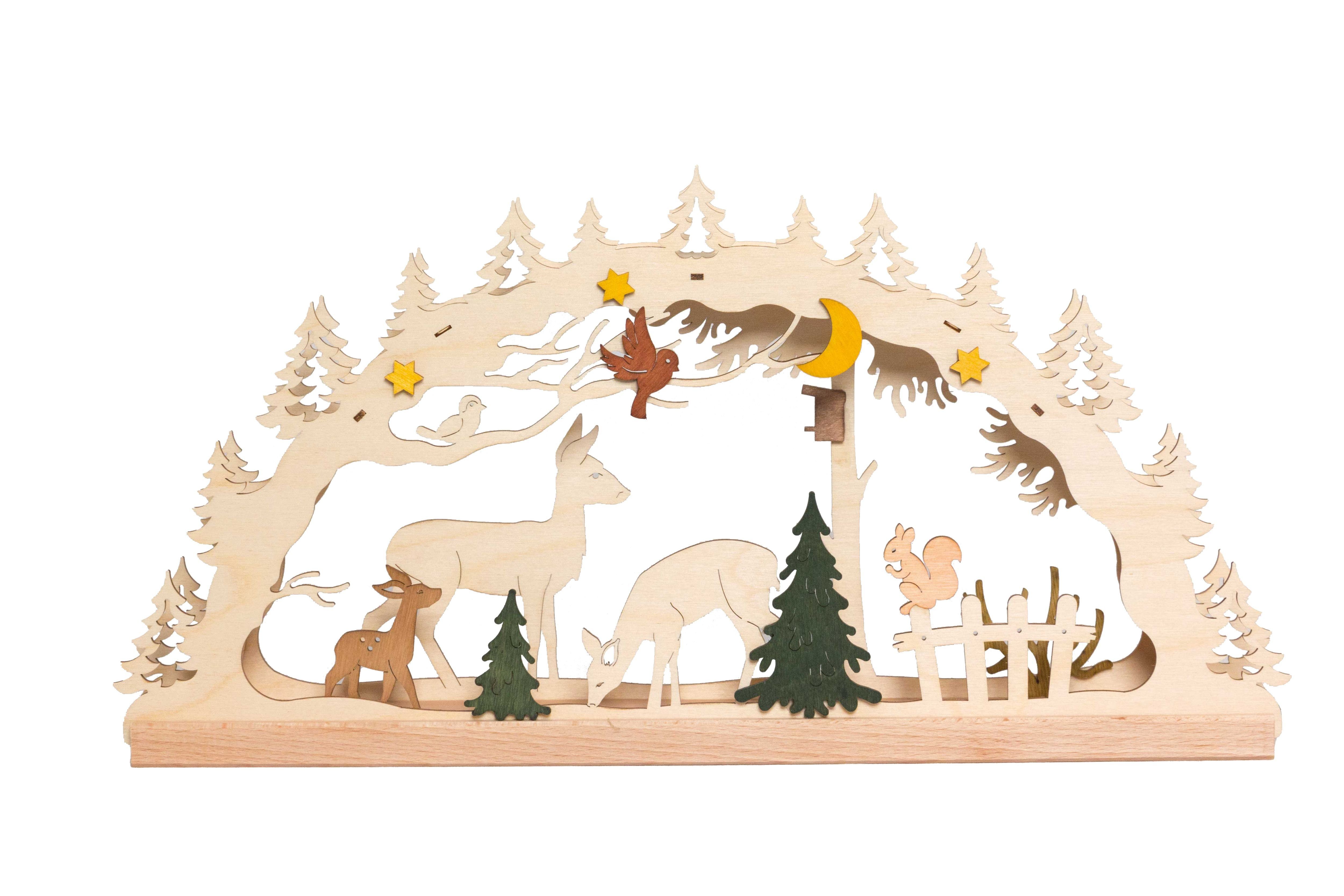Eine wunderschöne Winterdekoration nach erzgebirgischer Tradition: Der Schwibbogen als Bastelset zum Selbstbauen. Selbstgebasteltes erfreut doch immer wieder die Herzen der Beschenkten am Meisten. Hier sind unsere Bastelsets eine wertvolle Hilfe. Mit den passgenau gefertigten Einzelteilen aus Holz können auch kleine, angehende Holzhandwerker bewundernswerte Geschenke selbst fertigen. Die meisten fertig gebastelten Sets lassen sich mit Wasserfarben, Acrylfarben, Filz- oder Wachsmalstiften noch weiter verschönern. Leim und Farbstifte sind nicht im Lieferumfang enthalten. Bei den Bastelsets handelt es sich nicht um Spielzeug.