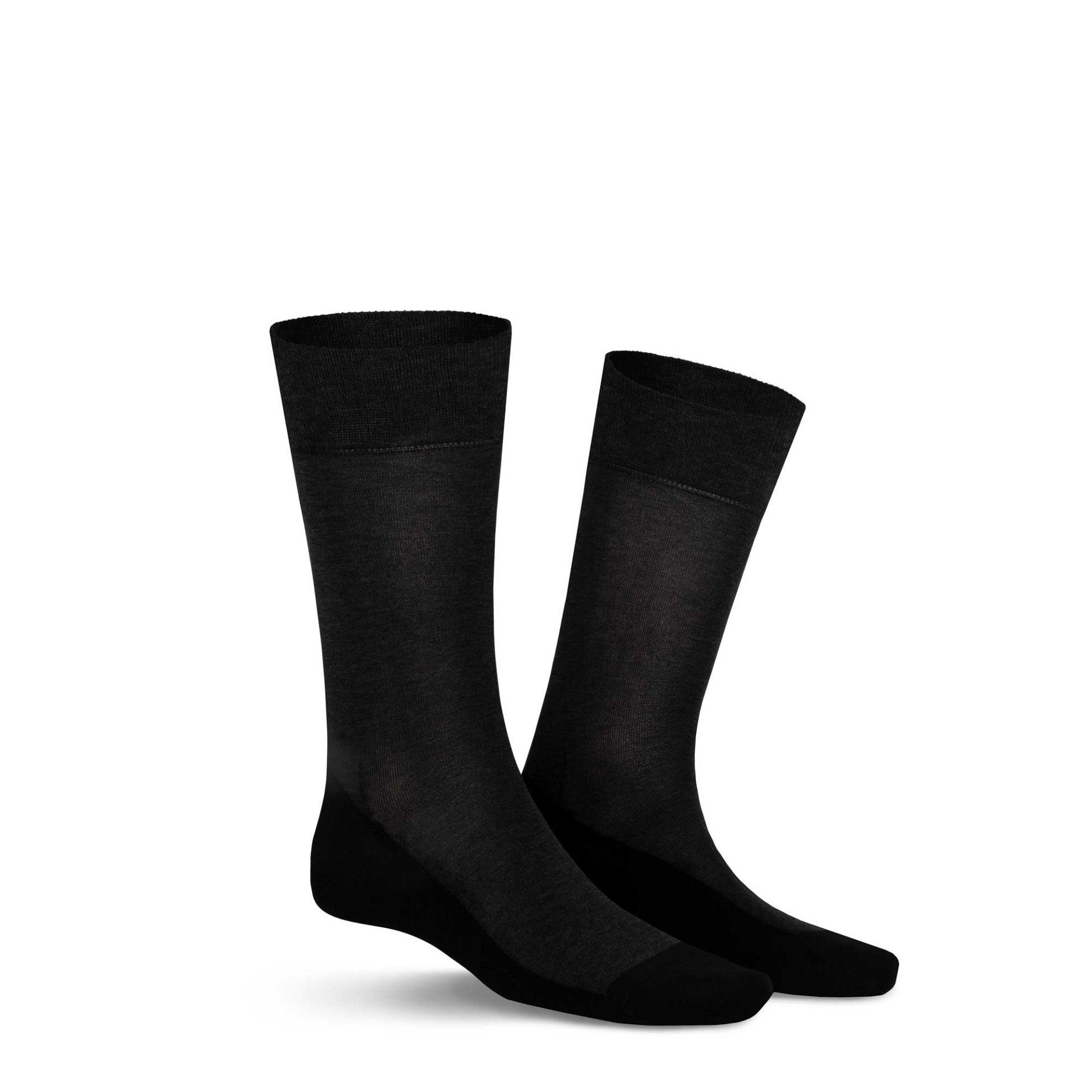 KUNERT GEORGE, die Business Socken bestechen mit einem sehr angenehmem Tragegefühl den ganzen Tag. Die Kombination aus feinster Merinowolle sowie Polypropylen und einer klimaregulierenden Funktionssohle steht zweifelsfrei für eine hochwertige Qualität. Die partielle Verstärkung an Spitze und Ferse und der druckfreie Komfort verhindert Druckstellen an Ihren Füßen.