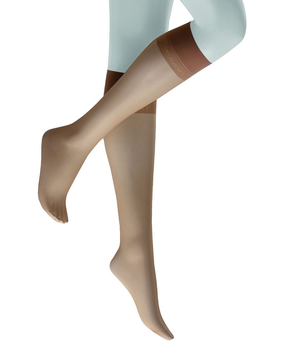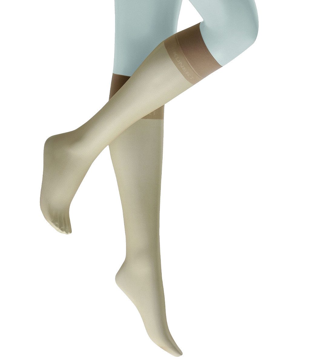 Transparent und matt zeigen sich die MYSTIQUE 20 Kniestrümpfe mit dezent verstärkter Fußspitze mit Maschenstopp und weicher Spitzenflachnaht. Mit diesen Kniestrümpfen kann Frau sich einfach nur wohlfühlen, denn der Abschlussbund ist super bequem und druckfrei. probieren Sie es aus!