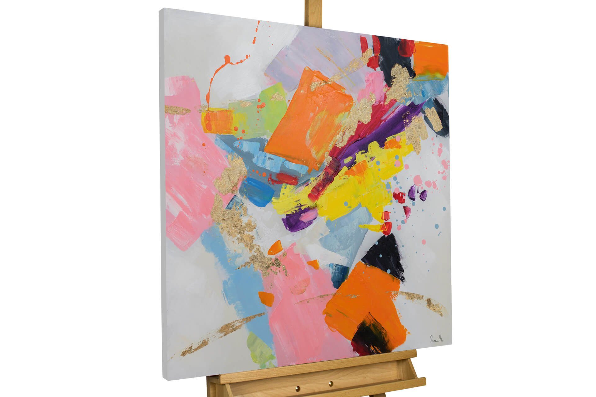 Den Goldschatz findet man bei dem Acrylgemälde 'Behind the Rainbow', nicht nur am Ende des Regenbogens. Akzente in Goldglanz verteilen sich über der gesamten Leinwand, die im abstrakten Stil ein schillerndes Farbenspiel zeigt. Freuen Sie sich jeden Tag über das Gute-Laune-Motiv, indem Sie sich das Bild in Ihr Büro hängen.