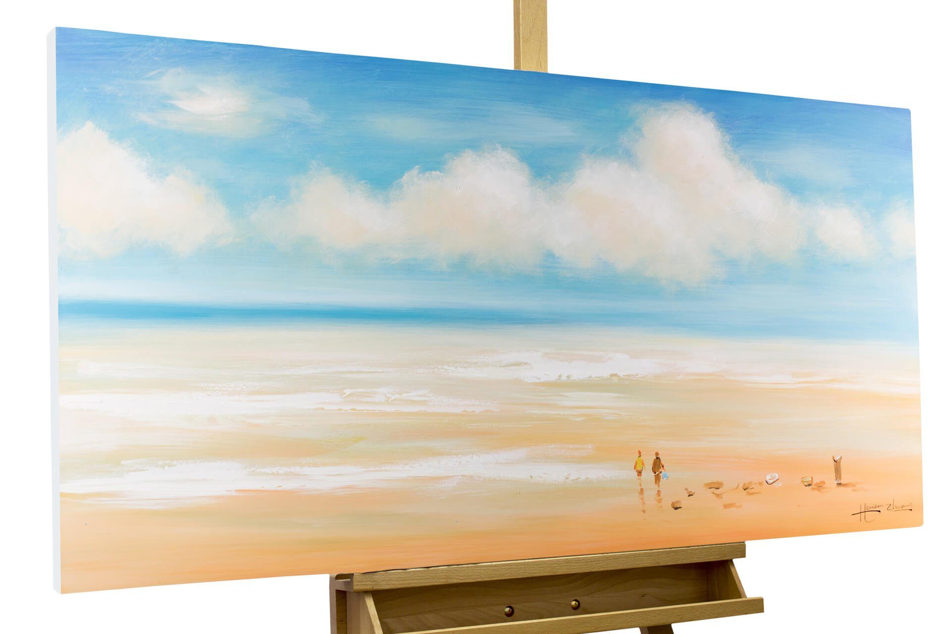 Mit der leisen 'Melodie der Meere' holen sie sich nicht nur einen idyllischen Strandabschnitt nach Hause, sondern gleich auch noch das Gefühl tiefster Erholung. Wolken huschen am blauen Himmel über ein Liebespaar hinweg, das romantisch im hellbraunen Sand verweilt. Entfliehen Sie Ihrem Alltag mit diesem Gemälde in der Küche oder Ihrem Café!