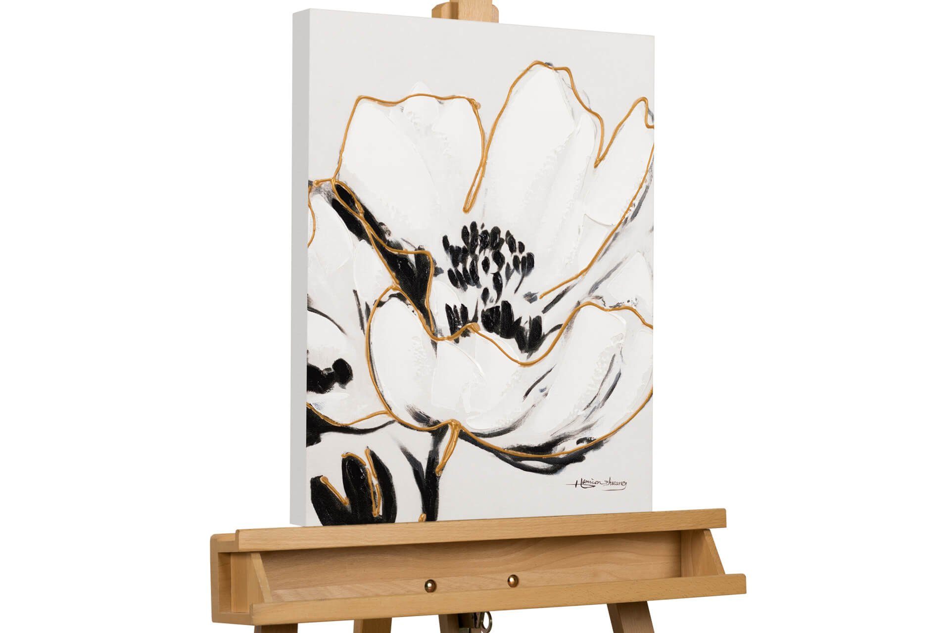 Eine 'Weiße Unschuldsblume' erhebt sich auf dem Acrylgemälde des Künstlers Harrison Zhuang. Durch den hohen Kontrast zwischen dem leuchtenden Goldglanz der handgemalten Blume und dem sanften Weiß der Blütenblätter bringt der Künstler ein kraftvolles Element in das Blütenmotiv. Die Magnolie steht in Ihrer Praxis für Reinheit und Perfektion.