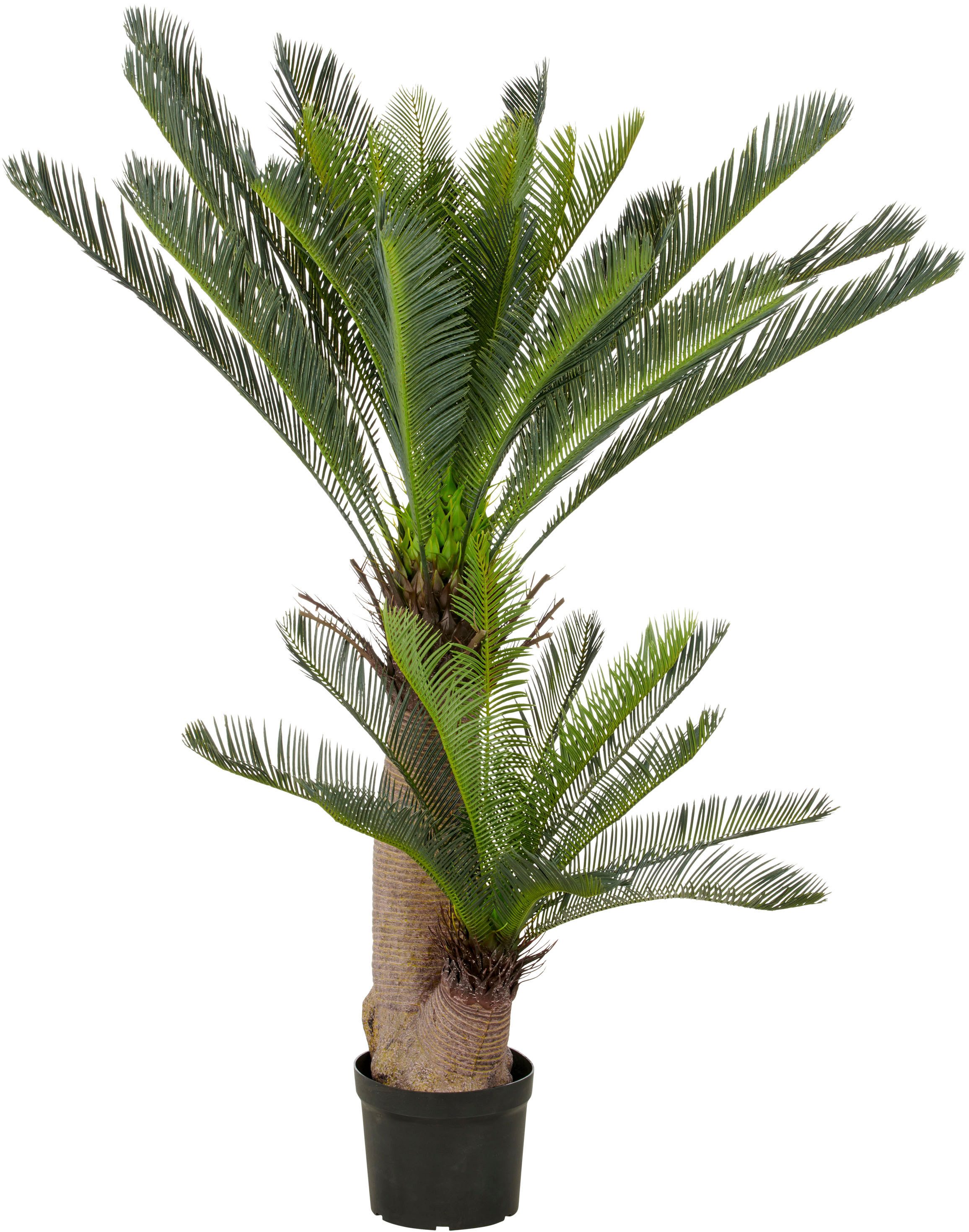 Die Kunst-Cycaspalme besticht durch ihr naturgetreues und üppiges Erscheinungsbild, das jedem Raum eine besondere Atmosphäre verleiht. Mit ihren detailreichen Wedeln an den zwei Stämmen bringt sie frisches Grün in dein Zuhause, ganz ohne Pflegeaufwand. Der robuste Kunststofftopf sorgt für einen stabilen Stand und ist perfekt für eine direkte Platzierung geeignet. Dank ihrer UV-Beständigkeit behält die Palme ihre Farbe und Frische, selbst bei intensiver Sonneneinstrahlung. Ideal für Wohnräume, Büros oder als stilvolle Ergänzung in deinem geschützten AußenBereich. Perfekt für alle, die auf der Suche nach einer langlebigen und pflegeleichten Dekoration sind.