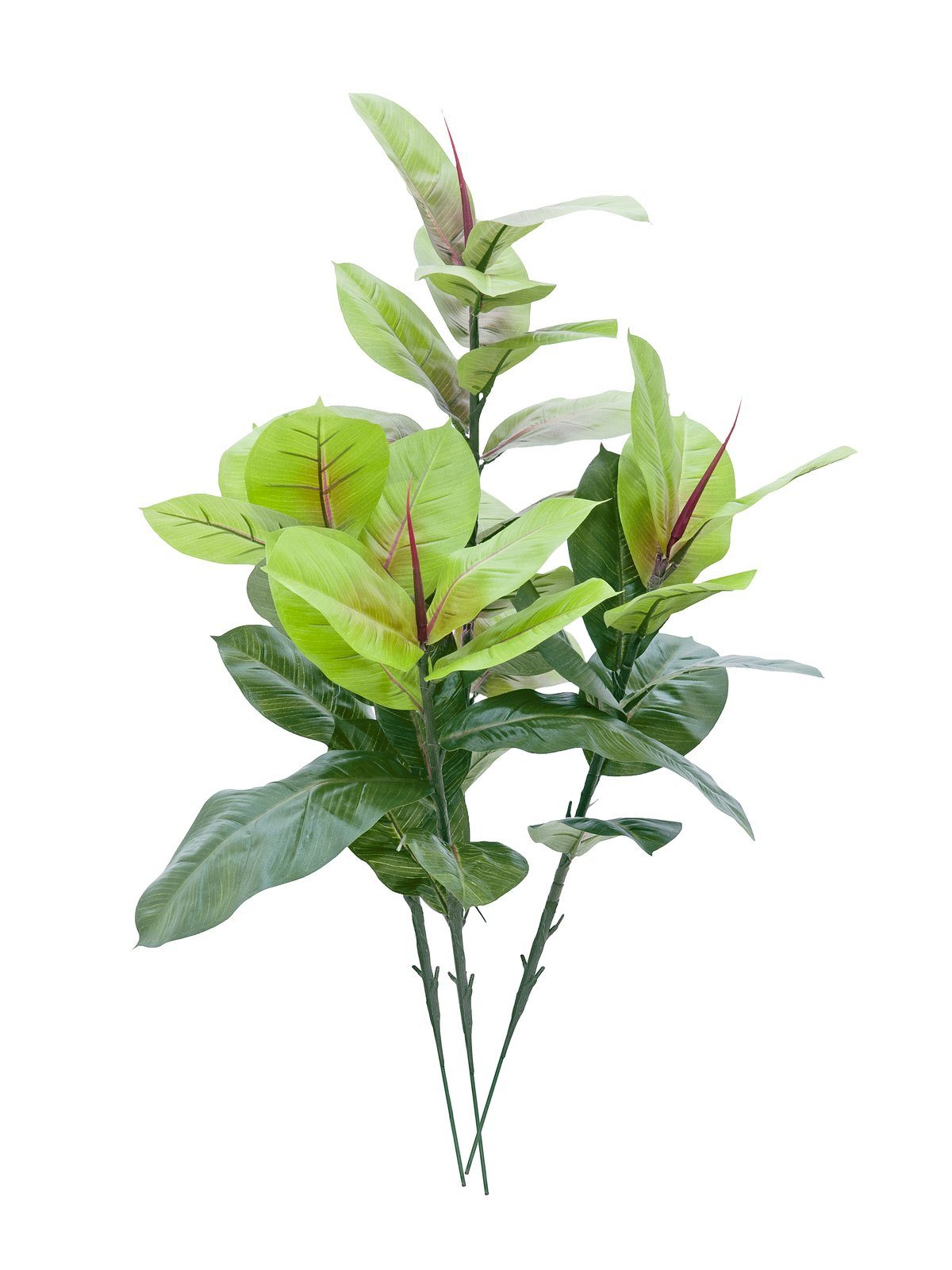 EUROPALMS Gummibaum, Kunstpflanze Der Gummibaum - botanisch Ficus elastica - erlebt momentan sein Revival als Zimmerpflanze: Seine elegante Wuchsform in Verbindung mit großen glänzenden breitovalen Blättern verleiht selbst nüchtern eingerichteten Büro- und Wohnräumen eine tropische Fülle. Im Gegensatz zum echten Gummibaum nimmt Ihnen die künstliche Alternative von Europalms schwierige Lichtverhältnisse oder Zugluft nicht übel. Bei der Herstellung wurde sehr viel Wert auf ein naturgetreues Erscheinungsbild gelegt, wie die typischen rötlichen Nebenblätter die schützend Jungblätter der Pflanze umhüllen. Der künstliche Gummibaum hat eine Gesamthöhe von 150 cm und wird in einem schwarzen Gärtnertopf geliefert, welcher der Pflanze einen stabilen Stand beim Einstellen in einen Übertopf gibt. Gummibaum Kunststamm Der Artikel wird fertig zum Hinstellen ausgeliefert Mit ca. 147 grünfarbenen naturgetreuen Blättern Technische Daten Stamm: 8 x Kunststamm Aufstellung/Befestigung: Gärtnertopf Farbe: Grün Blattwerk: Ca. 147 Blätter Material: Textil Stil der Deko: Tropen; Zimmerpflanze Maße: Höhe: 1,5 m Gewicht: 3,00 kg