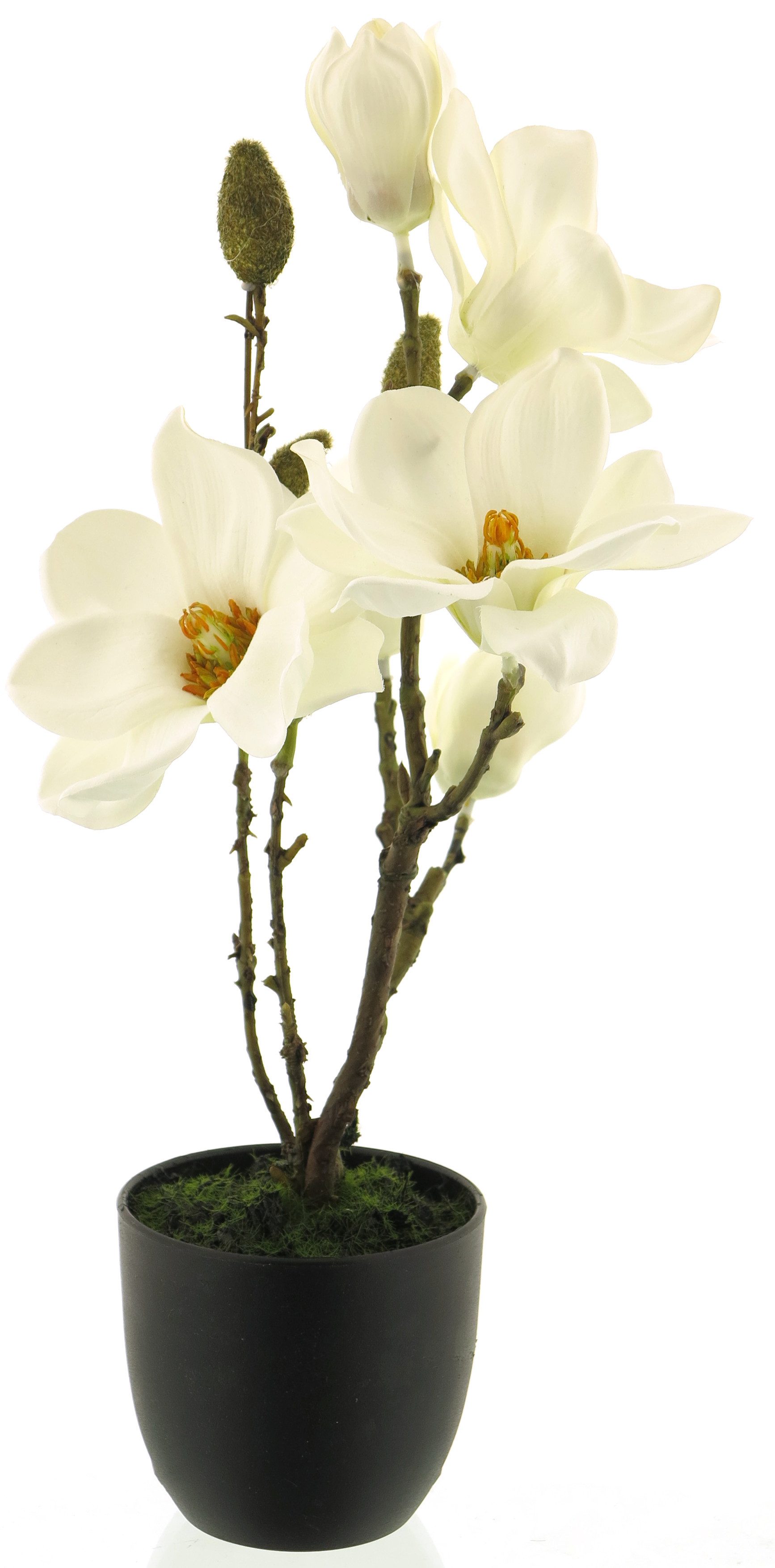 Lieferumfang: 1x künstliche Magnolia im schwarzen Topf