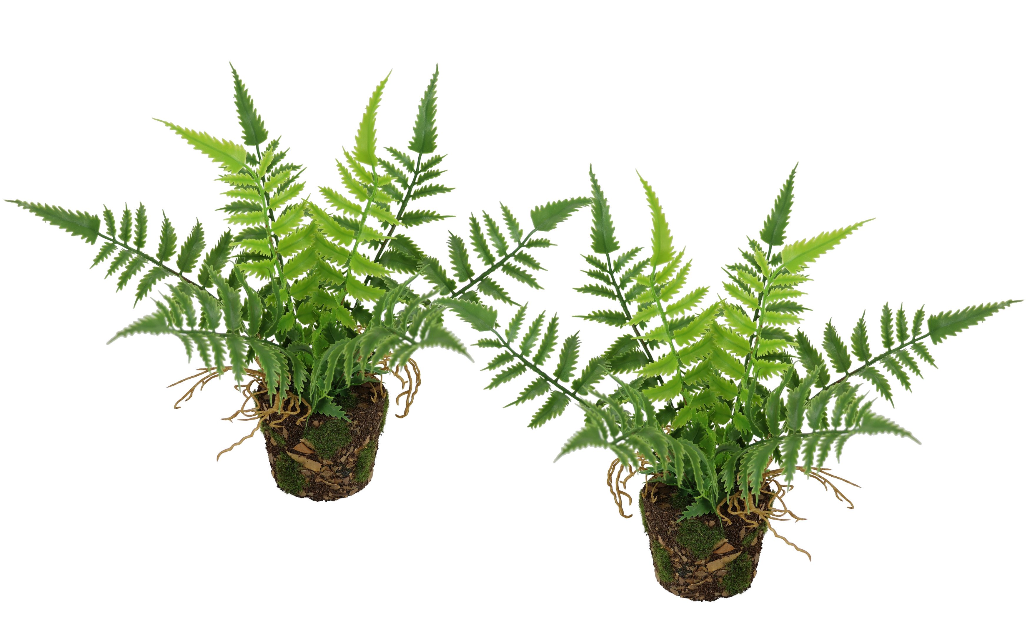 Mit dieser grünen Kunstpflanze im praktischen 2er Set können Sie Ihr Wohnraum schön und modern gestalten! Als schöne Alternative zu der lebendigen Grünpflanzen verleiht diese stillvolle künstliche Dekopflanze eine gemütliche Atmosphäre. Diese Pflanzendeko sorgt hervorragend für eine Wohlfühlatmosphäre, eignet sich als Wohnzimmerdeko oder als Fensterdeko auf der Fensterbank. Ob als Deko für Zuhause oder im Büro dekorativ platziert - beleben die grünen Zimmerpflanzen aus Plastik sogar die düsterste Ecke. Als Zimmer Deko ist diese schlichte Dekopflanze sehr beliebt, denn alle künstliche Farne sorgen für einen besonderen Blickfang. Die künstlichen Deko Pflanzen im Topf lassen sich außerdem wunderbar mit weiterer Zimmerdeko oder mit anderen beliebigen künstlichen Topfpflanzen kombinieren und somit kreieren Sie Ihre ganz eigene Wohlfühl-Oase. Diese hübsche Plastikpflanze ist ein absoluter Hingucker! Als langlebige Topfpflanze ist diese künstliche Zimmerpflanze für jeden Anlass perfekt.