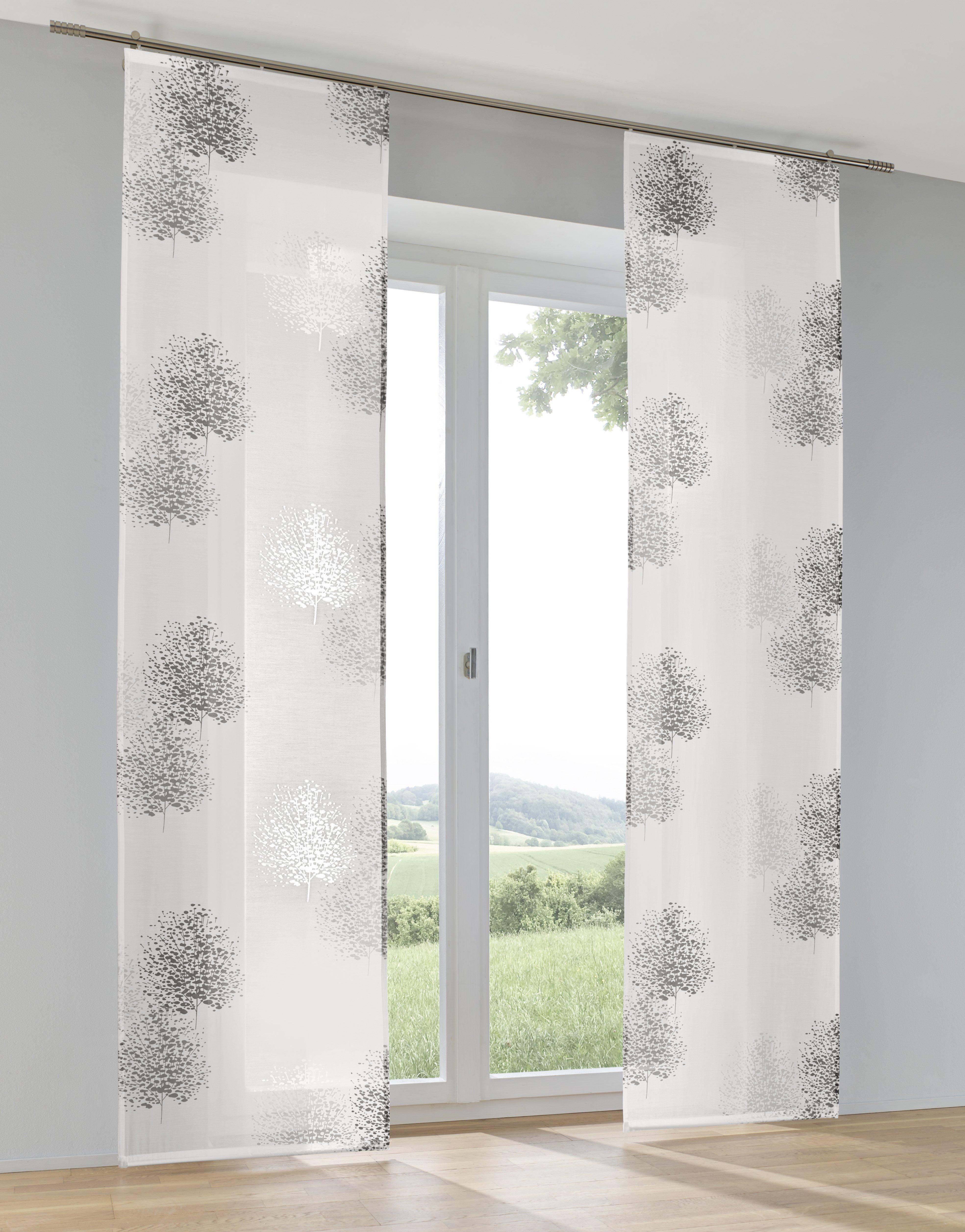 Hinweis Dekoration | Die angegebenen Maße sind die fertig dekorierten Maße. Eine Schiebegardine ist eine schmale, glatt hängende Stoffbahn, die sich sowohl als Sichtschutz als auch zur Raumteilung eignet. Durch die Schiebetechnik sind Schiebegardinen sehr flexibel einsetzbar. |