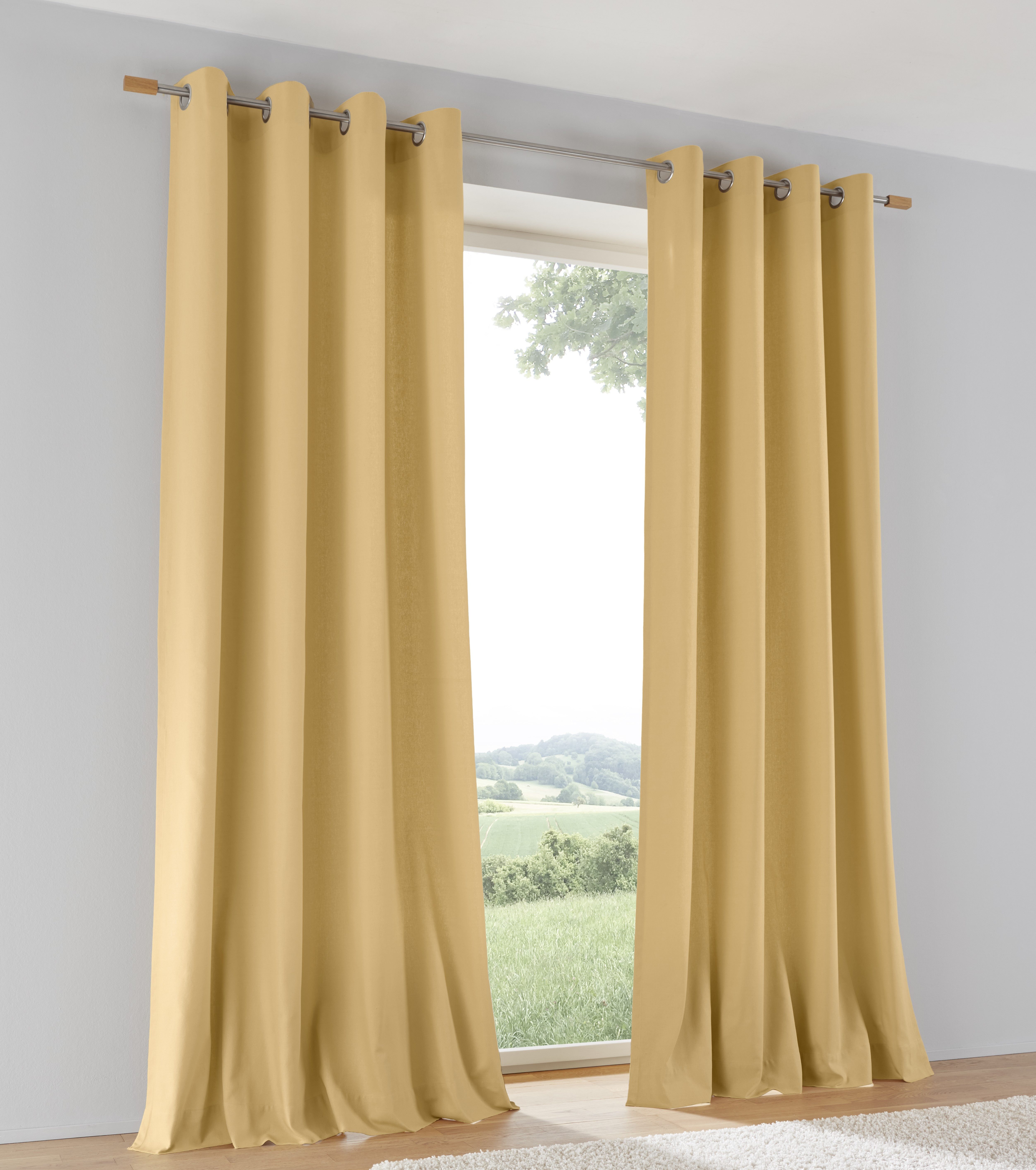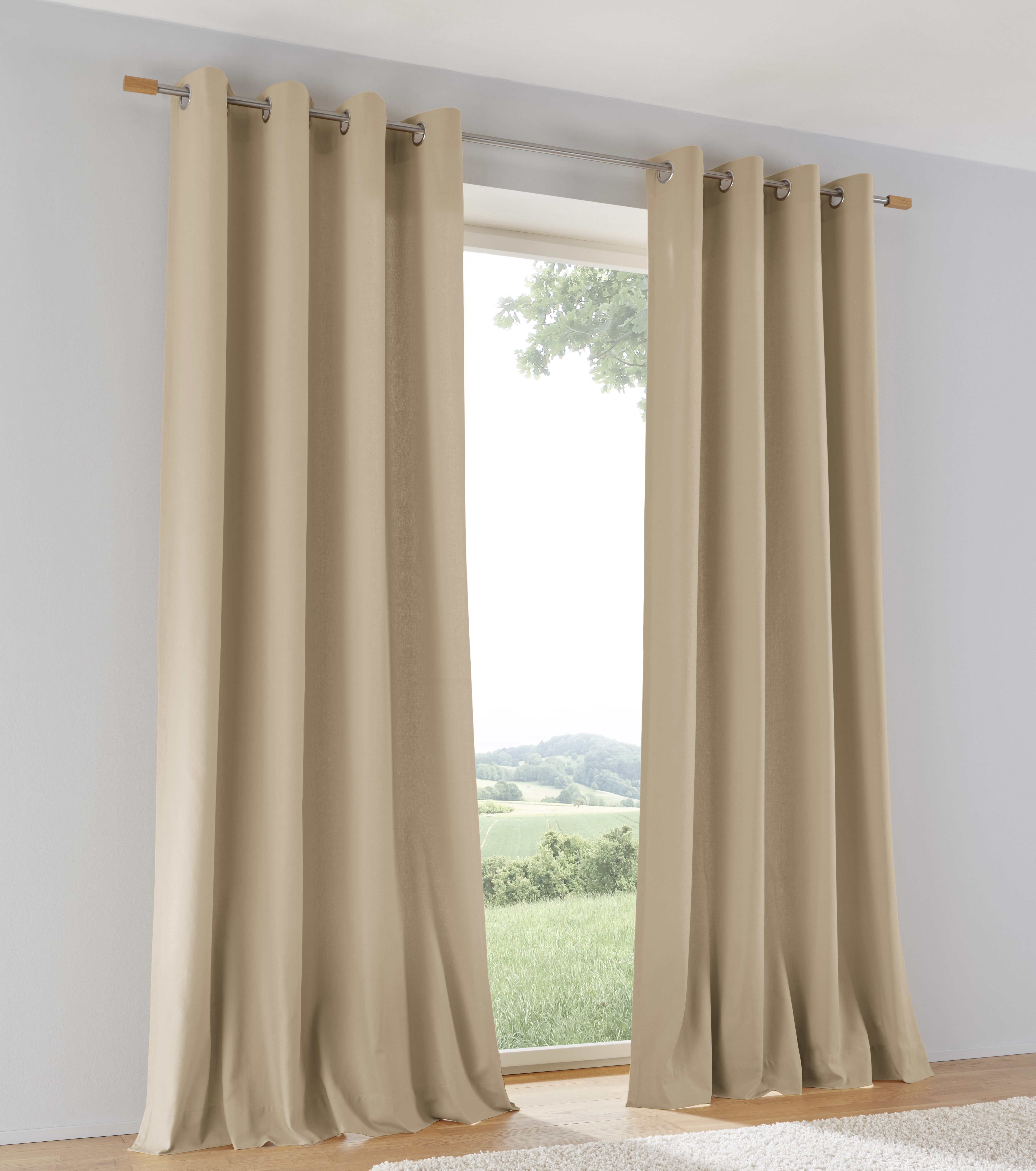 Hinweis Aufhängung | Aufhängung erfolgt mittels Ösen (Durchmesser ca. 35 mm) an der Gardinenstange. |