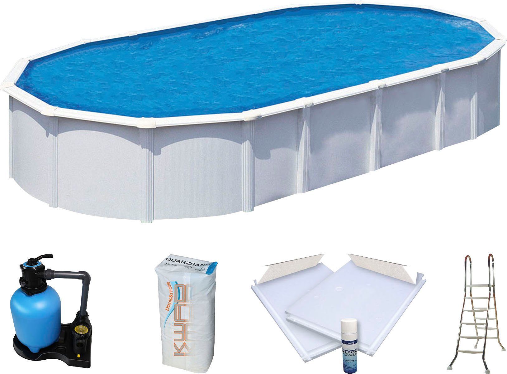 Lieferumfang | Bodenisolationsset Bodenschutzvlies Edelstahlleiter Filtersand Innenfolie Sandfilteranlage blue line Top Mount 400 Skimmer & Düse Solarplane Stahlwandbecken |