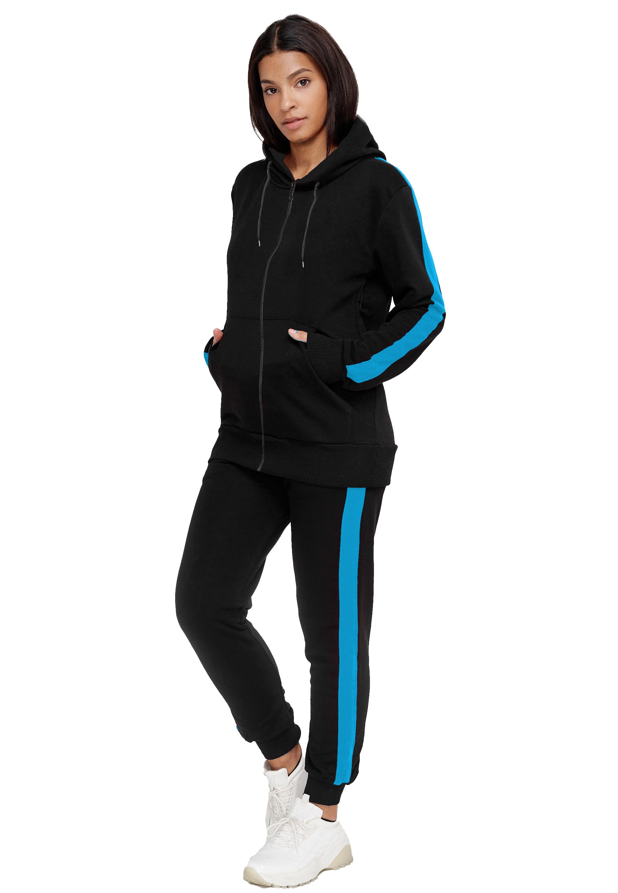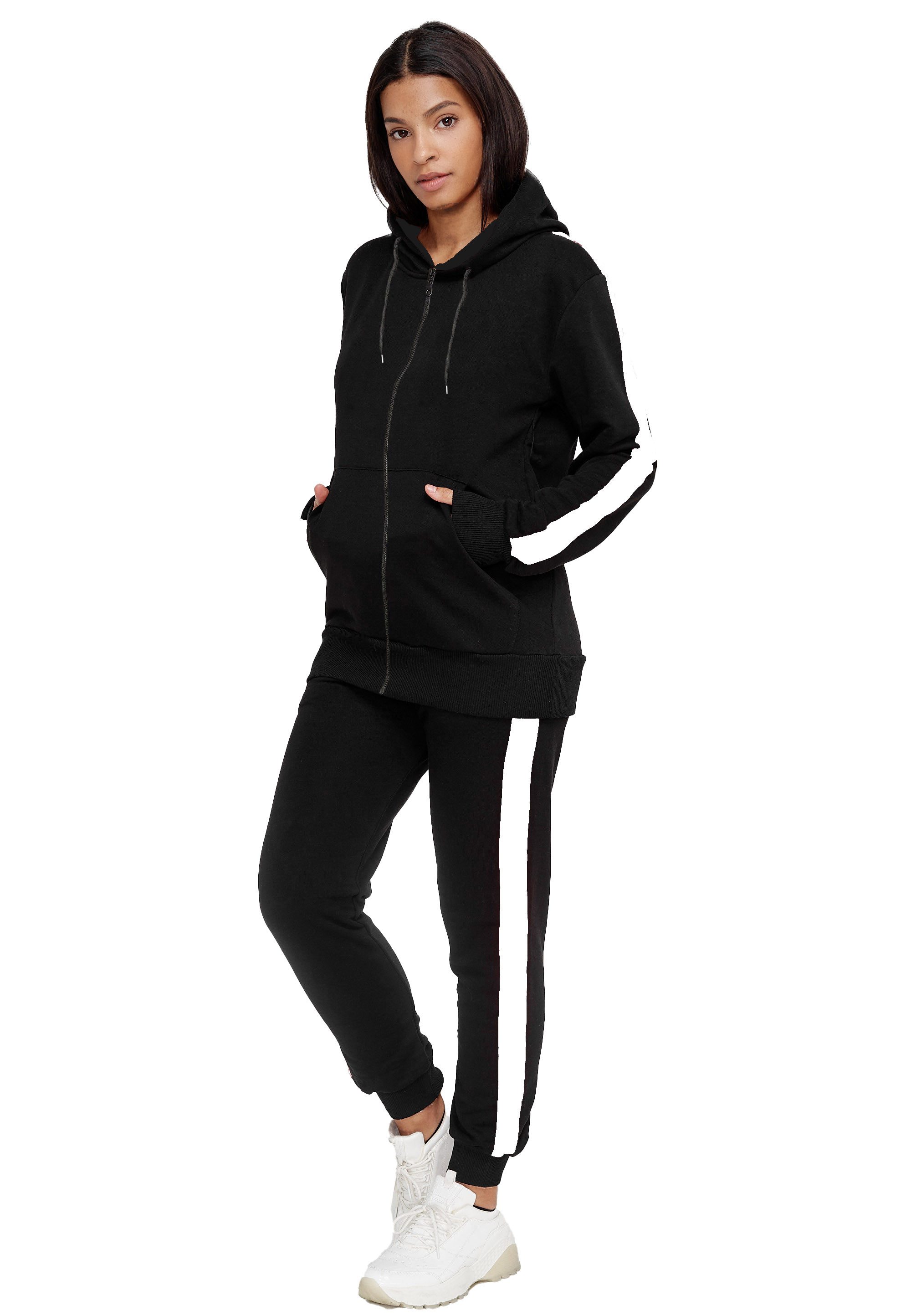 Dieser Freizeitanzug für Damen punktet mit seinem schlichten, einfarbigen Design und ist in vielen modernen Farben erhältlich. Die Kapuze mit Kordelzug sowie die praktischen seitlichen Taschen in Jacke und Hose verleihen dem Sportanzug eine coole und sportliche Optik. Gummibündchen an den Knöcheln runden das Design perfekt ab und sorgen für eine ideale Passform.