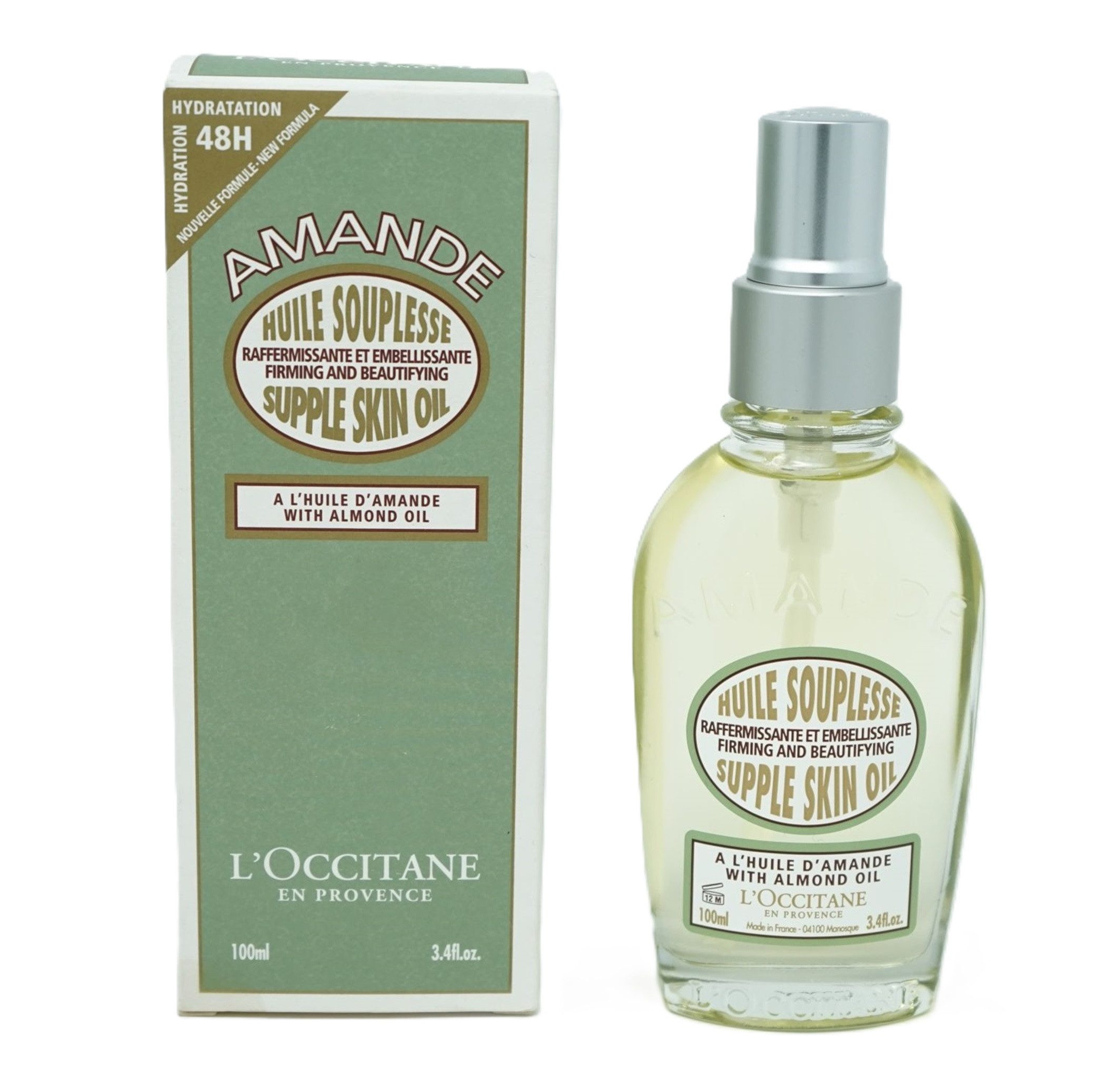 Das Almond Supple Oil von L’Occitane ist ein intensiv pflegendes Körperöl mit süßem Mandelöl und Camelinaöl Die seidige Textur zieht schnell ein glättet die Haut und verleiht ihr ein strahlend gepflegtes Aussehen