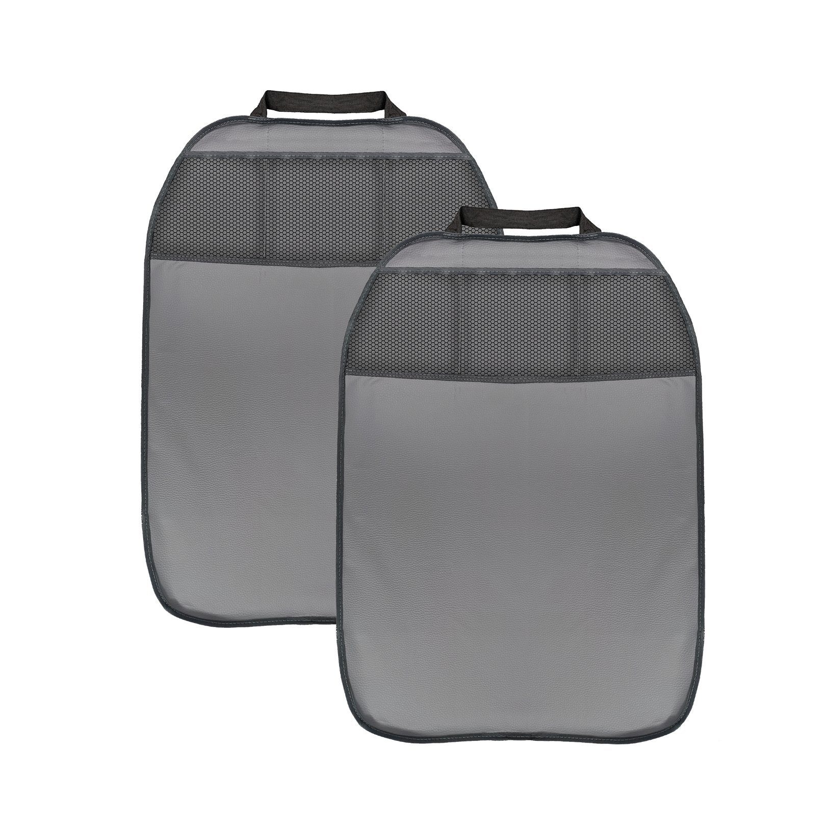Bei uns erhalten Sie 2 x hochwertige, strapazierfähige Rückenlehnen-Abdeckungen aus robustem Kunstleder in grau mit 3 praktischen Taschen zum Schutz Ihrer Fahrzeugsitze.