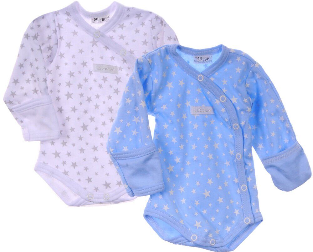 Dieser hochwertige Baby-Wickelbody im praktischen Zweierpack ist die ideale Wahl für Neugeborene, Frühchen und Kleinkinder. Beide Bodys sind aus 100% reiner Baumwolle gefertigt, die sich durch ihre Weichheit und Hautfreundlichkeit auszeichnet – perfekt für die empfindliche Babyhaut. Das Set enthält zwei stilvolle Designs: einen Wickelbody in Blau mit bezauberndem Sternchen-Muster und einen in klassischem Weiß, ebenfalls mit zartem Sternchen-Druck. Die extra langen Ärmel mit integriertem Kratzschutz schützen das Baby vor versehentlichen Kratzern und halten die kleinen Hände angenehm warm. Dank der praktischen Druckknöpfe an der Wickelöffnung lässt sich der Body mühelos an- und ausziehen, was den Alltag mit Baby erheblich erleichtert. Diese Erstlingsbodys sind nicht nur funktional, sondern auch ein hübsches Geschenk zur Geburt oder für besondere Anlässe. Diese Bodys sind für Mädchen und Jungen gleichermaßen geeignet, neutral und unisex. Sie vereinen Komfort, Stil und Vielseitigkeit und sind in verschiedenen Größen erhältlich – ein Must-Have in der Baby-Erstausstattung für jede Jahreszeit!