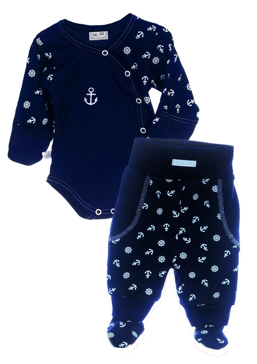 Wickelbody mit Kratzschutz und Hose mit Füßchen Set. 2Tlg. Baby Anzug in angenehm weicher Baumwoll-Qualität. Aus 100% Baumwolle, weicher, haufreundlicher Stoff. 44-50 (Frühchen, NB), 50-56 (0-1Mon), 56-62 (1-2Mon), 62-68 (2-4Mon), 68-74 (4-6Mon), 74-80(6-9Mon), 80-86 (9-12Mon), 86-92 (12-18Mon), 92-98 (18-24Mon) oder 98-104 (24-36Mon). Die Hose hat eine Super geile Funktion: wenn die Mal nach einer Zeit zu klein geworden ist, kann man die Bündchen nach oben stülpen und die Füßchen abschneiden. Da die Hose von innen genäht ist, franst diese nach dem Abschneiden nicht aus. Danach kann die Hose weiter als 3/4 Hose weiter getragen werden. Als Jogginghose oder Schlafhose perfekt geeignet.
