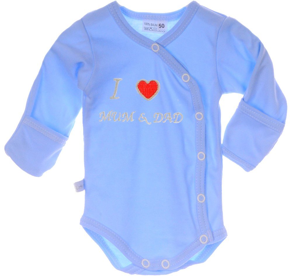 Der Wickelbody in blau mit der liebevollen Papa-Mama-Stickerei ist die perfekte Wahl für Ihr Neugeborenes. Aus 100% reiner Baumwolle gefertigt, bietet dieser Body höchsten Komfort und ist sanft zur empfindlichen Babyhaut. Die extra langen Ärmel mit Kratzschutz schützen die zarte Haut Ihres Babys vor Kratzern, während die praktischen Druckknöpfe ein einfaches An- und Ausziehen ermöglichen. Dieser Wickelbody ist in verschiedenen Größen erhältlich und eignet sich hervorragend als Geschenk zur Geburt. Das zeitlose Design in Blau macht ihn ideal für jeden Anlass. Kombinieren Sie ihn mühelos mit anderen Baby-Outfits für einen niedlichen und komfortablen Look!