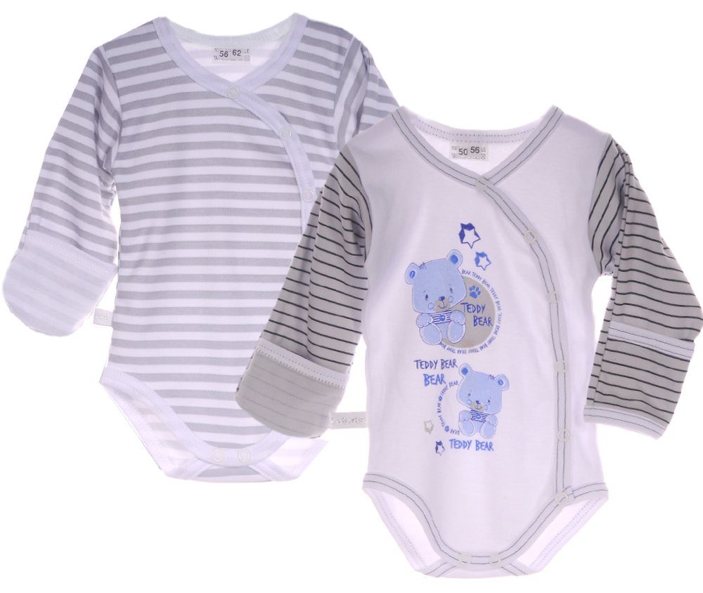 Praktisch, bequem und niedlich – der Baby-Wickelbodys Zweierpack ist die ideale Wahl für die ersten Lebensmonate Ihres Babys! Dieses Set umfasst zwei hochwertige Wickelbodys, die mit Druckknöpfen ausgestattet sind und das An- und Ausziehen besonders leicht machen. Ein Body ist in klassischem Weiß mit grauen Ringeln gehalten, während der zweite in Weiß mit seitlichen grauen Streifen und einem niedlichen Bärchen-Aufdruck überzeugt. Die Bodys sind aus 100% reiner Baumwolle gefertigt, die sich angenehm weich auf der empfindlichen Babyhaut anfühlt und gleichzeitig atmungsaktiv ist. Die extra langen Ärmel mit integriertem Kratzschutz bieten zusätzlichen Komfort und Sicherheit, sodass Ihr Baby rundum geschützt bleibt. Perfekt für Neugeborene, Frühchen und Kleinkinder, sind diese Wickelbodys in verschiedenen Größen erhältlich. Ob als stilvolle Alltagskleidung oder als liebevolles Geschenk zur Geburt – dieser Zweierpack kombiniert durchdachtes Design mit bezaubernder Optik und höchster Qualität. Ein unverzichtbares Basic für jede Baby-Garderobe!
