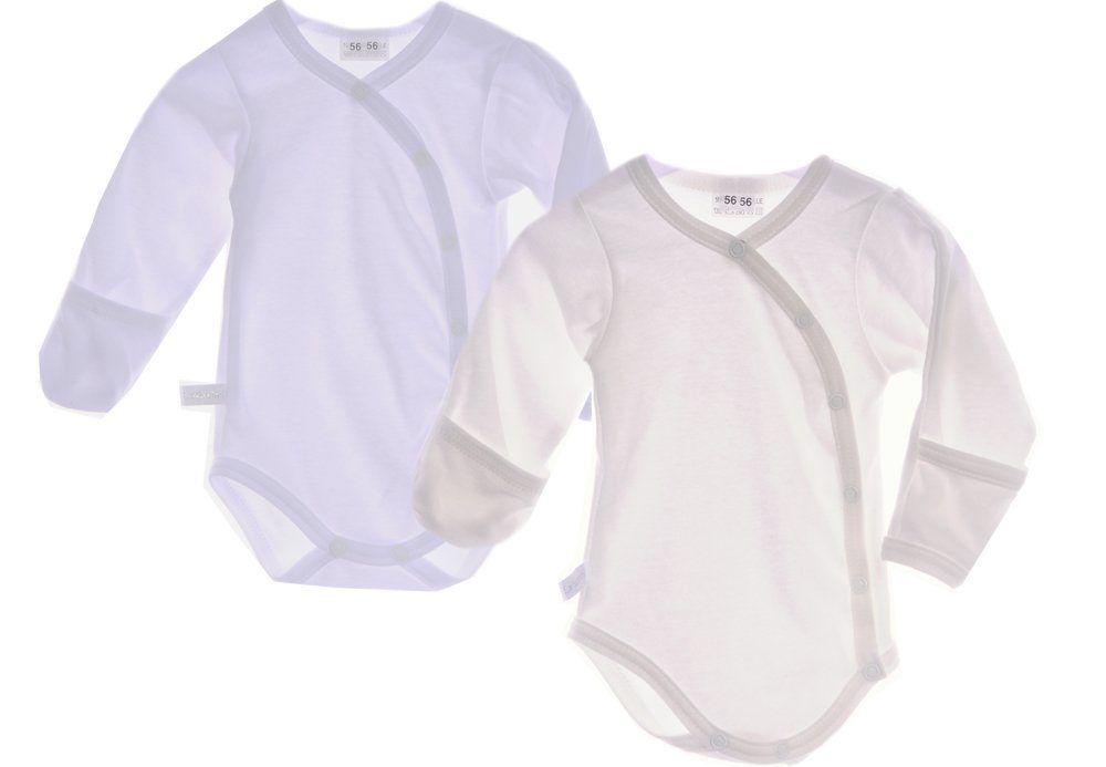 Dieser 2er-Pack Wickelbodys in Weiß und Creme aus 100% reiner Baumwolle bietet weichen Komfort für Ihr Baby. Beide Bodys verfügen über extra lange Ärmel mit Kratzschutz, um die empfindliche Haut zu schützen. Das praktische Wickeldesign erleichtert das An- und Ausziehen. Perfekt für den Alltag – sanft, bequem und ideal für Neugeborene.