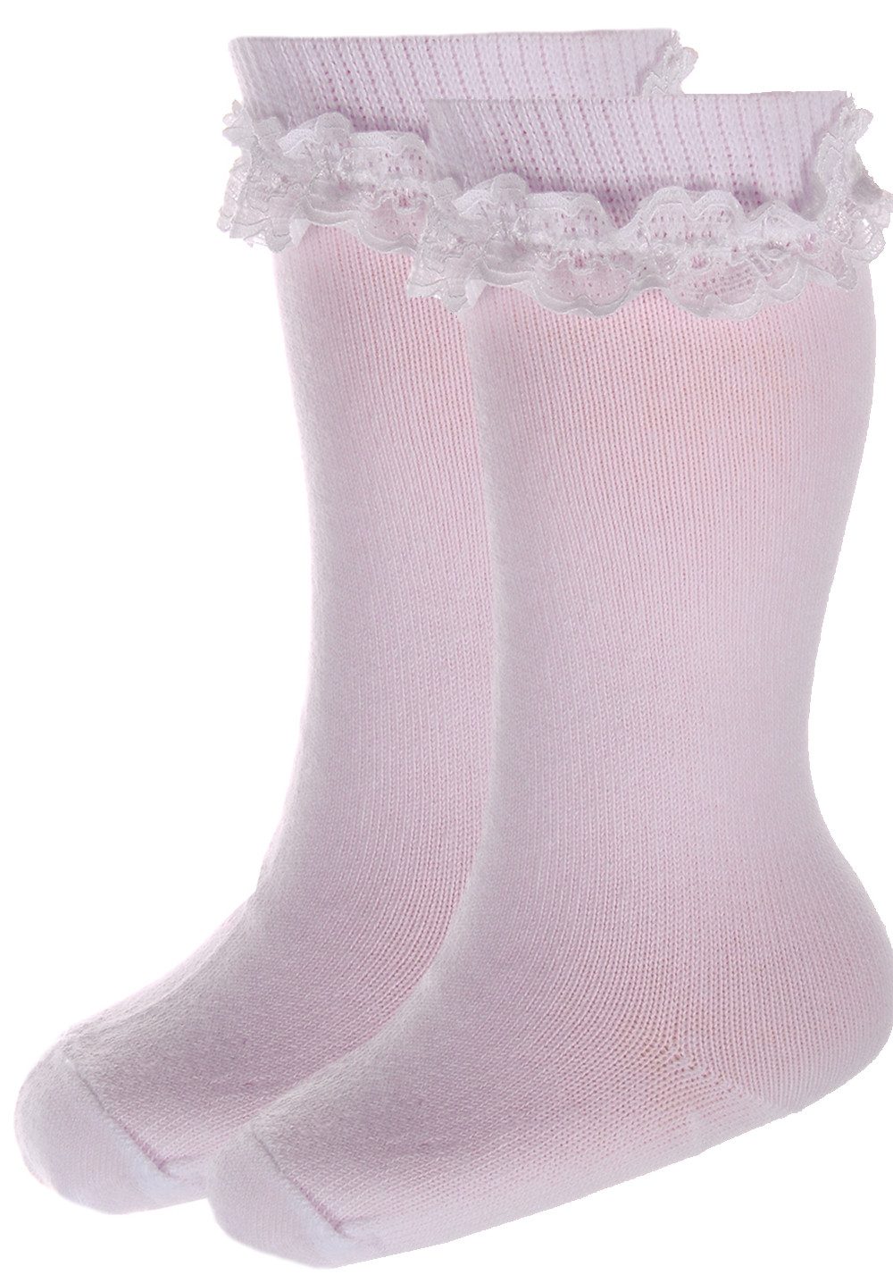 Diese festlichen Kniestrümpfe sind ein elegantes Accessoire für Babys, Kinder, Jugendliche und Damen. Hergestellt aus feinem Strickmaterial mit hohem Baumwoll-Anteil (76 % Baumwolle, 21,5 % Polyamid, 2,5 % Elasthan), überzeugen sie durch ihre weiche, atmungsaktive und elastische Qualität. Das klassische Weiß in Kombination mit den verspielten Rüschen am Abschluss sorgt für einen stilvollen und zugleich mädchenhaften Look. Ob zur Taufe, zum Geburtstag, zum Schulanfang, zu Kommunion, Konfirmation, Hochzeit, Weihnachten oder für ein Fotoshooting – diese Kniestrümpfe sind vielseitig tragbar und runden jedes festliche Outfit perfekt ab.
