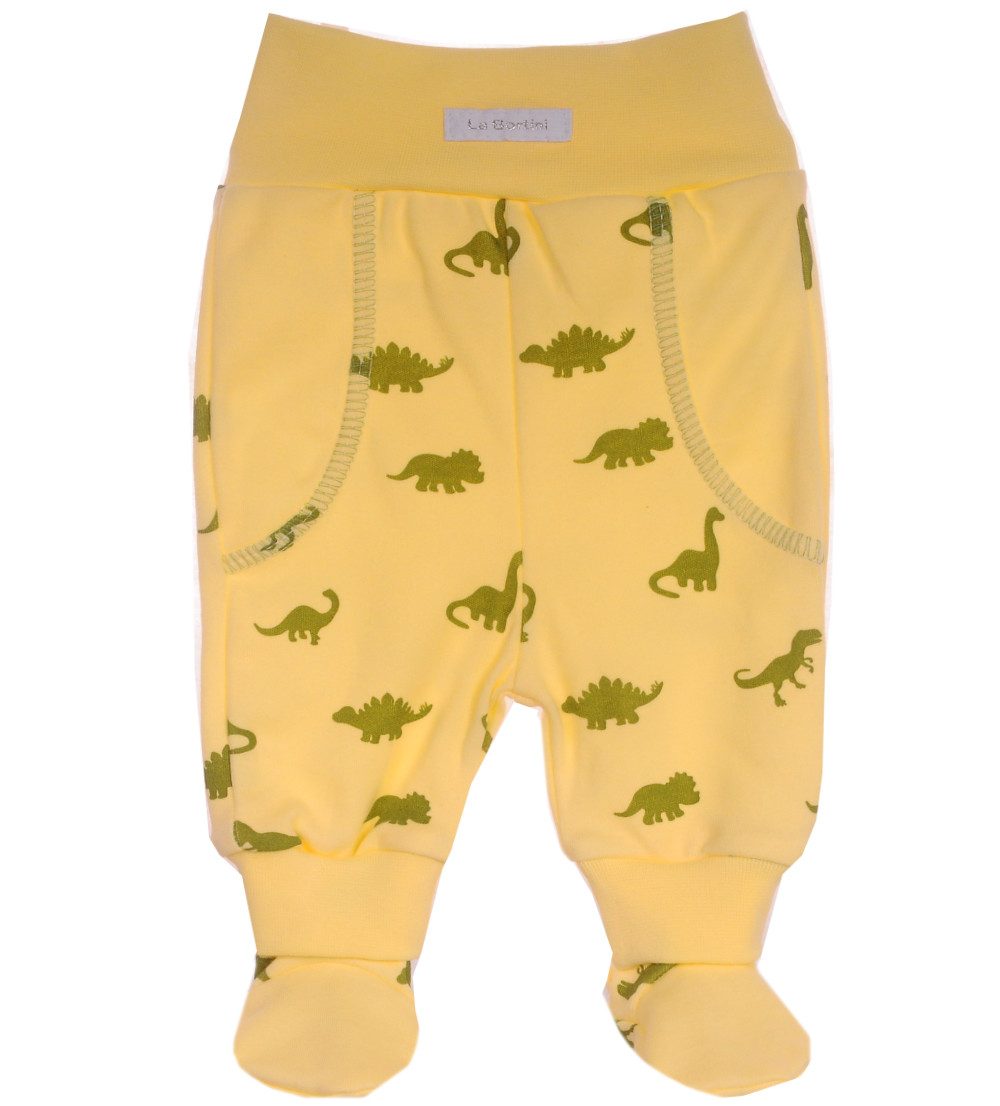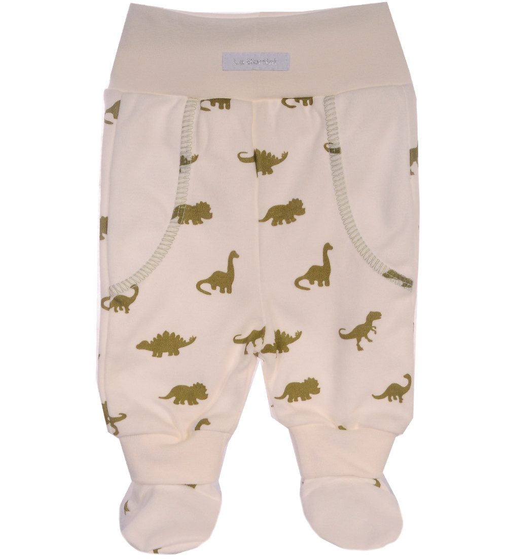 Weiche und gemütliche Babyhose mit Füßchen in den Farben Gelb, Grau oder Creme, verziert mit einem niedlichen Dino-Muster. Hergestellt aus 100 % reiner Baumwolle, bietet diese Erstlingshose höchsten Tragekomfort und ist besonders sanft zur empfindlichen Babyhaut. Der elastische Bund und die weichen Bündchen aus 95 % Baumwolle und 5 % Elasthan sorgen für eine perfekte Passform und ein angenehmes Tragegefühl, ohne einzuengen. Dank des geschlechtsneutralen Designs eignet sich die Hose ideal für Baby Jungen und Mädchen und lässt sich vielseitig kombinieren. Perfekt für alle Jahreszeiten, ob als bequeme Schlupfhose für den Alltag, zum Schlafen oder als gemütliche Ergänzung eines süßen Outfits. Eine wunderbare Geschenkidee zur Geburt, die Komfort, Funktionalität und ein liebevolles Design vereint.