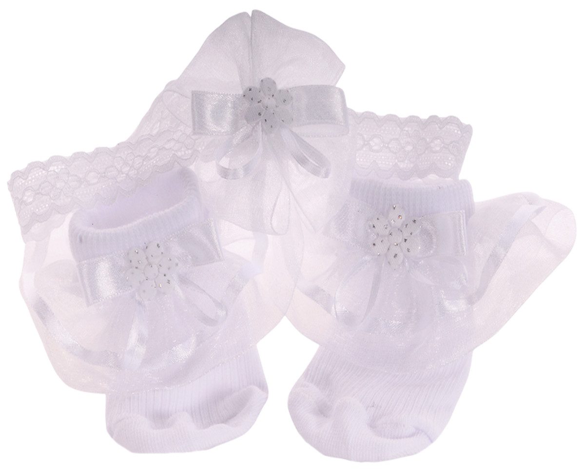 Niedliches 2-teiliges Set: Ein Paar Socken mit Rüschen & Schleifchen und ein Stirnband mit Schleife