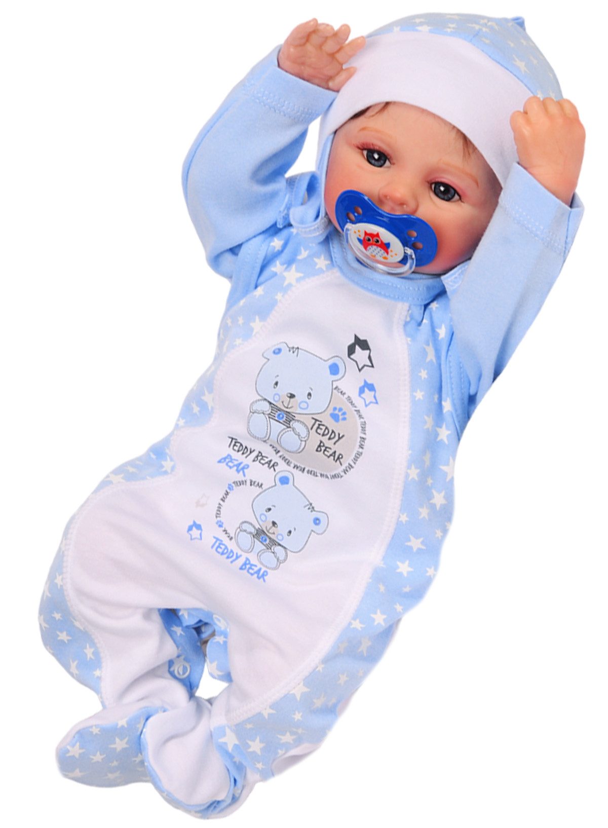 Größe: 44-50 (Frühchen0Mon), 50-56 (0-1Mon), 56-62 (1-2Mon), 62-68 (2-4Mon), 68-74 (4-6Mon). Farbe: Rosa mit Sternen Muster und Bärchen Print
