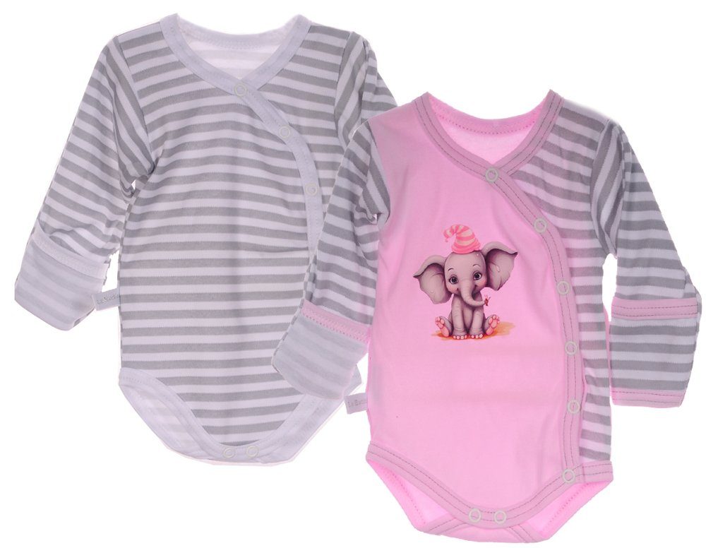 Wickelbody 2er Pack Baby Bodys Langarmbodys Body in Weiß Rosa gestreift
