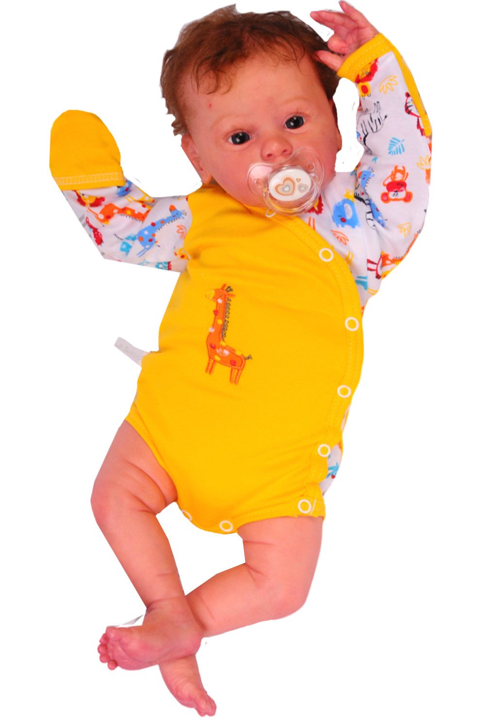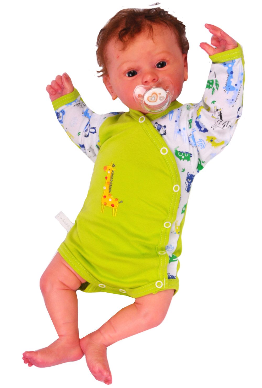 Dieser liebevoll gestaltete Wickelbody mit Kratzschutz ist ein praktisches und zugleich niedliches Basic für die Babyausstattung. Erhältlich in frischem Grün oder sonnigem Gelb, begeistert der langärmlige Body mit einem fröhlichen Safari-Tiere-Muster und einer hochwertigen Giraffen-Stickerei. Gefertigt aus 100% reiner Baumwolle, ist er besonders weich, hautfreundlich und atmungsaktiv – ideal für empfindliche Babyhaut. Der praktische Wickelverschluss mit seitlichen Druckknöpfen erleichtert das An- und Ausziehen, während die integrierten Kratzfäustlinge an den Ärmeln zarte Babyhände und Gesicht zuverlässig schützen. Durch das geschlechtsneutrale Design ist dieser Body sowohl für Jungen als auch Mädchen geeignet – perfekt als Geschenk zur Geburt oder für die Erstausstattung.