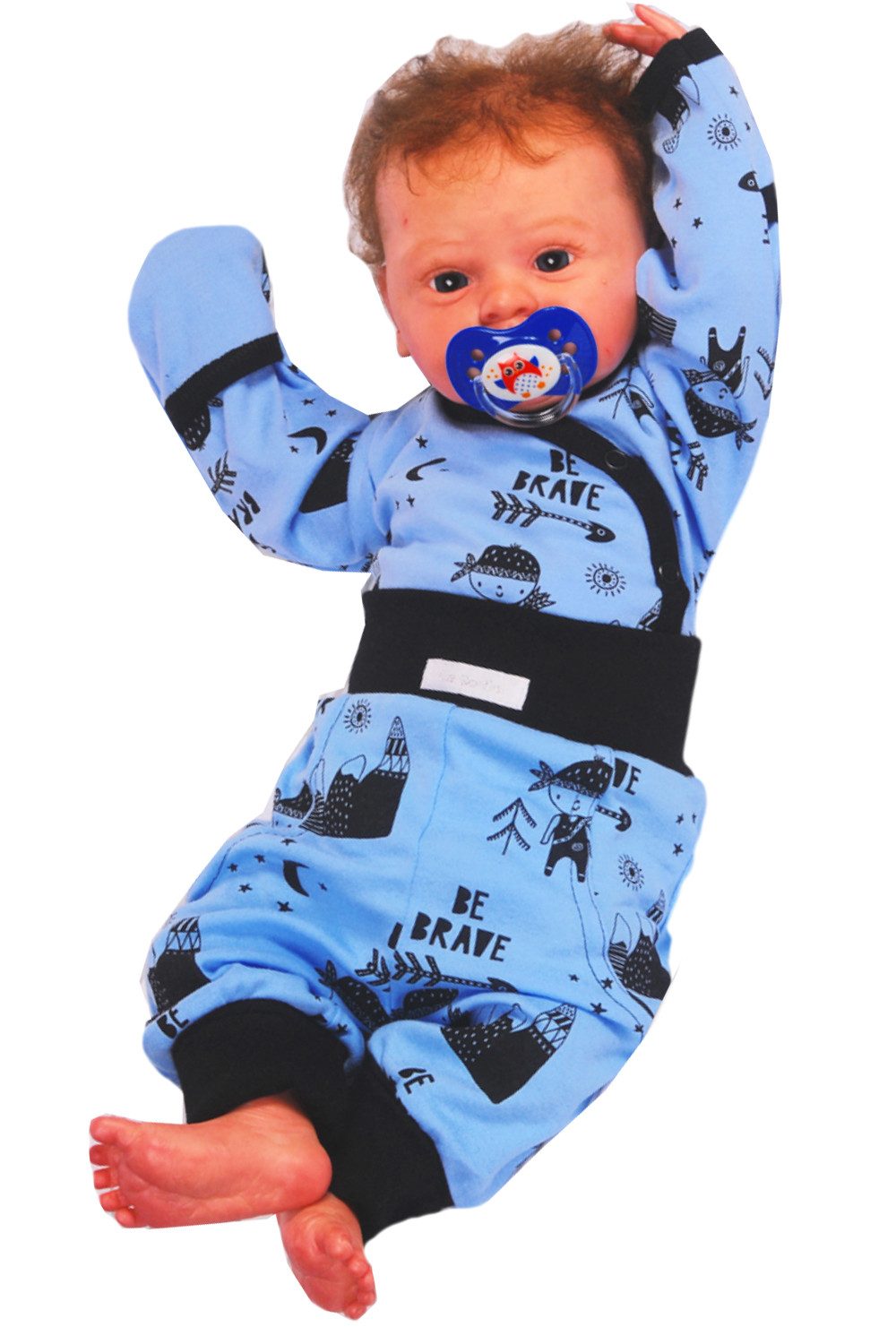 Dieses wunderschöne Erstlingsset – bestehend aus einem Wickelbody mit extra langen Ärmeln und Kratzschutz sowie einer passenden Mitwachshose in Blau mit schwarzem Muster – ist das ideale Outfit für Neugeborene und ein perfektes Geschenk zur Geburt eines Baby Jungen. Der Wickelbody aus 100 % reiner Baumwolle ist besonders weich, atmungsaktiv und sanft zur empfindlichen Babyhaut. Dank des praktischen Wickelverschlusses mit Druckknöpfen lässt er sich mühelos an- und ausziehen, ohne über das Köpfchen gezogen werden zu müssen – ideal für die ersten Wochen. Die extra langen Ärmel mit integriertem Kratzschutz sorgen für zusätzlichen Komfort und schützen das Baby vor ungewolltem Kratzen. Die Mitwachshose in Blau mit modernem schwarzem Muster bietet eine bequeme Passform und wächst mit dem Baby mit. Der weiche Bund und die Bündchen aus 95 % Baumwolle und 5 % Elasthan garantieren einen angenehmen Sitz, ohne einzuengen. Ob für die ersten Tage zu Hause, für den Alltag oder als liebevolle Geschenkidee – dieses hochwertige Baby-Set vereint Komfort, Funktionalität und stilvolles Design. Перейти und dem kleinen Schatz einen perfekten Start ins Leben ermöglichen!