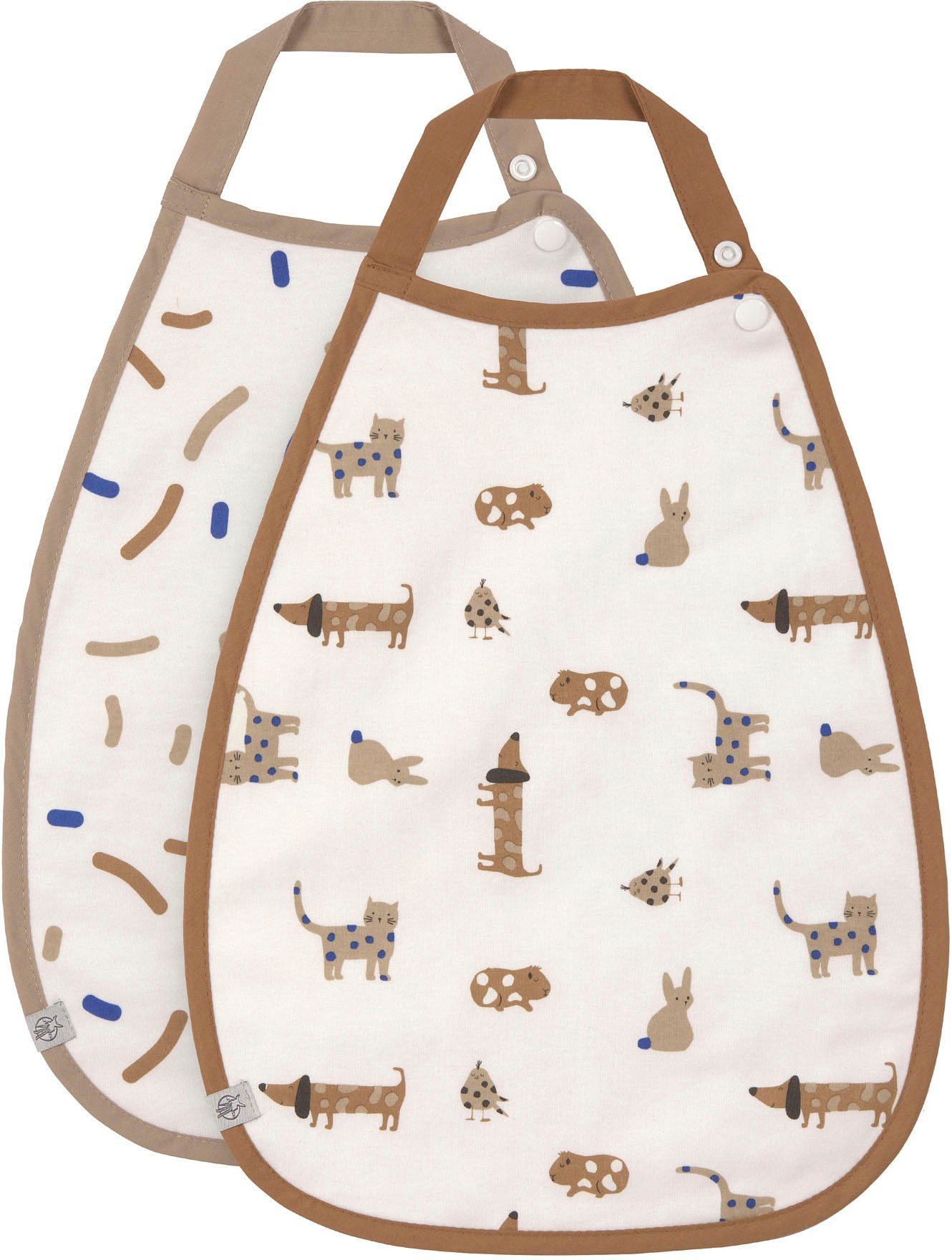 "Hund, Katze, Hamster oder lieber Piepmatz? Die praktischen Lätzchen im 2er Set aus der Little Mateys Kollektion schützen die Kleidung der Kleinen nicht nur bei den ersten Essversuchen, sondern auch beim Basteln oder Malen. Die extra großen Lätzchen mit den niedlichen Haustierprints laden zum Kleckern und Spielen ein. Die Lätzchen lassen sich durch 2 verstellbare Druckknöpfe vorne besonders leicht An- und Ausziehen. Die Vorderseite besteht zu 100 % aus Baumwolle (bio). Die Rückseite ist aus einem strapazierfähigen Materialmix hergestellt und mit einer wasserdichten Beschichtung im Inneren ausgestattet, damit die Kleidung darunter auch garantiert trocken bleibt. Die Lätzchen kommen im praktischen Doppelpack mit jeweils zwei verschiedenen Designs. Für Babys und Kleinkinder ab 6 bis 36 Monate geeignet. Die Lätzchen sind bei 40 °C waschbar. Tipp: Druckknöpfe vor dem Waschen schließen und einen Wäschebeutel verwenden."
