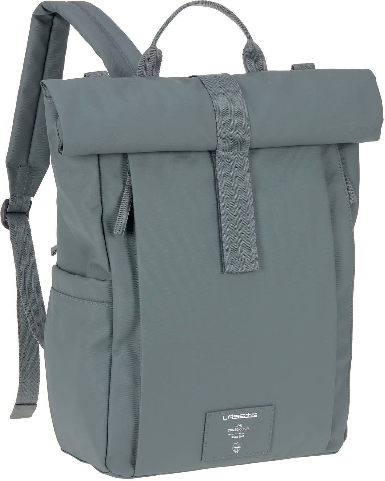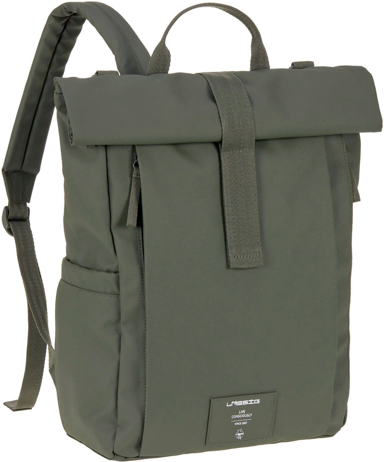 Ganz schön flexibel. Der Wickelrucksack Rolltop Up Backpack aus der LÄSSIG Green Label Kollektion besticht durch seine cleane Silhouette und die Extraportion an Platz. Der vegane Wickelrucksack sorgt dank seiner Öffnung im Rolltop-Style für Flexibilität. Muss mal etwas mehr mitgenommen werden, rollt man den Rucksack auf und hat im Handumdrehen zusätzlichen Stauraum oder Platz für längliche Gegenstände. Durch einfaches Aufrollen lässt sich das Volumen des Rucksacks von 18 auf bis zu 20 Liter vergrößern. Zusammengerollt lässt er sich mit einem einfach Klettverschluss schließen. Schnellen Zugriff auf das Innenleben hat man durch den Reißverschluss am Rücken. Ein Feuchtfach vorne, Reißverschlussfach am Rücken sowie praktisches Zubehör machen ihn zum perfekten Accessoire für Eltern. Ausgestattet mit einer wasserabweisenden Wickelunterlage, einem isolierten Flaschenhalter, einer Gläschenhalterung, einer Kinderwagenbefestigung und einer kleinen Utensilientasche hat man alles, was man unterwegs so braucht. Mit vielen verschiedenen praktischen Fächern, von innen sowie außen zugänglich, lassen sich alle wichtigen Utensilien durchdacht verstauen. Zusätzlicher Pluspunkt: Der Oberstoff des Rolltop Up Backpack ist zu 100 % aus Polyester (recycelt) hergestellt. Der recycelte Materialanteil entspricht 20 PET-Flaschen. Die Berechnung basiert auf einem Durchschnittsgewicht der PET-Flaschen von 17,2g.