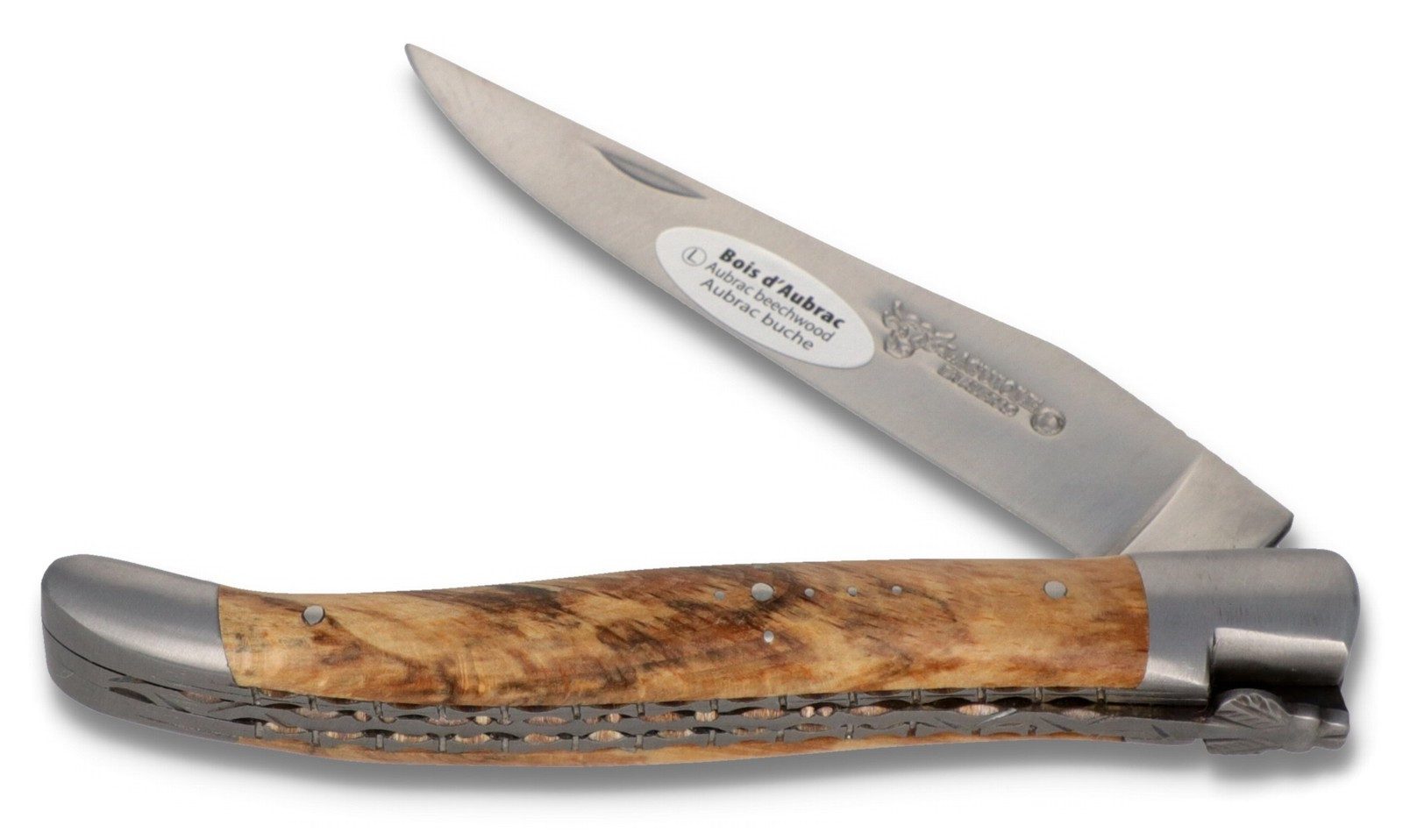Die Griffschalen sind aus schön gemasertem Aubrac Buchenholz angefertigt, das direkt aus der Region um die Stadt Laguiole stammt.