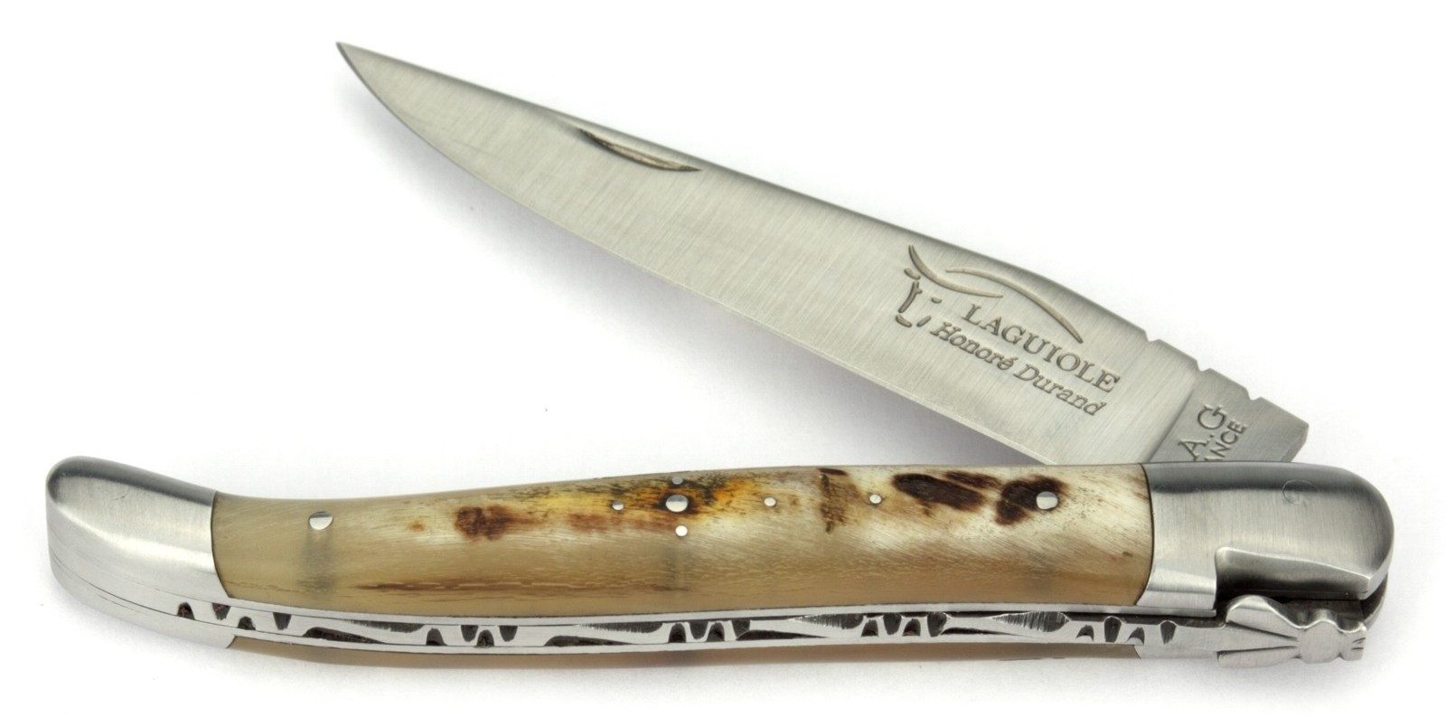 Dieses schöne Messer stammt aus der Ursprungsregion des Laguiole. Es wurde in der Schmiede des Honoré Durand traditionell in Handarbeit hergestellt.