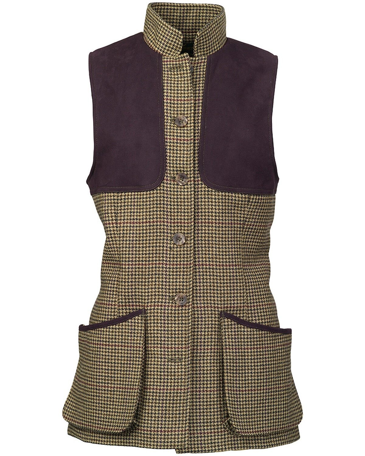 Die Damen Tweedweste von Laksen ist ein herausragendes Beispiel für das Zusammenspiel von Stil und Funktionalität, gefertigt aus hochwertigem Tweed aus schottischer Wolle von Lovat Mills. Mit ihrem klassischen Hahnentritt-Muster verkörpert sie die zeitlose Ästhetik des British Style und ist eine perfekte Ergänzung für die stilbewusste Garderobe. Die beidseitigen Kunstlederbesätze an den Schultern, die für die Schießschulter konzipiert sind, verleihen der Weste nicht nur einen charakteristischen Look, sondern auch die nötige Robustheit, die für den britischen Jagdstil unerlässlich ist. Praktische Details wie die großen Fronttaschen mit Balg und Druckknopflasche zur Erweiterung, die als Patronentaschen dienen, bieten ausreichend Stauraum für persönliche Gegenstände und Zubehör. Der elegante Stehkragen und die hochgeknöpfte Frontleiste sorgen für einen klassischen Abschluss, während die Taillenregulierung eine individuelle Anpassung ermöglicht und die feminine Silhouette betont. Seitliche Rückenschlitze tragen zur Bewegungsfreiheit bei und das komfortable Polyester-Futter garantiert ein angenehmes Tragegefühl. Diese Damen Tweedweste ist somit die ideale Wahl für Damen, die Wert auf britische Tradition, Qualität und stilvolle Details legen, sei es bei einem ländlichen Ausflug oder in der Stadt. Oberstoff: 100% Schurwolle; Futter: 100% Polyester