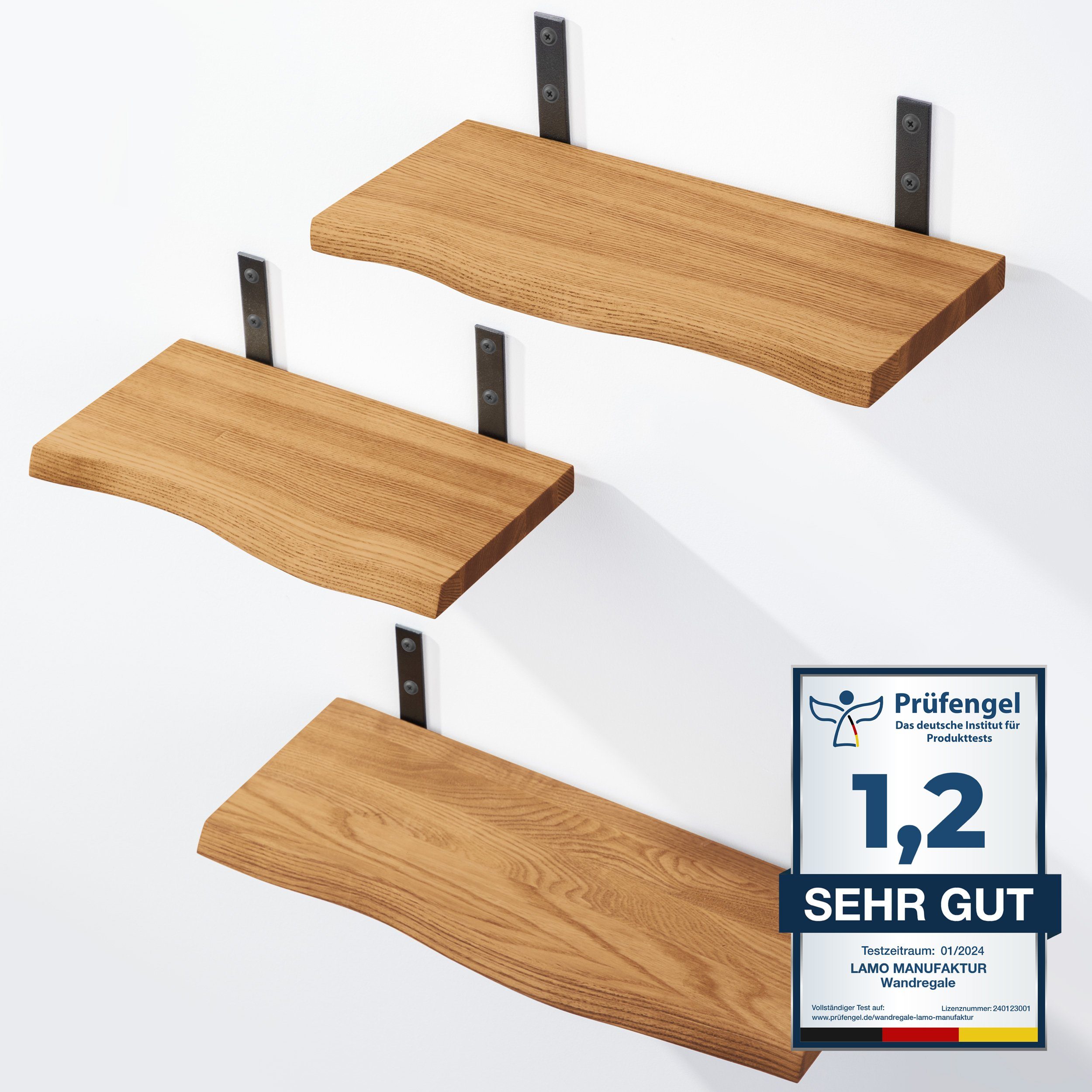 Montagehinweis | LAMO Wandregal SET 3 Stück mit Baumkante |
