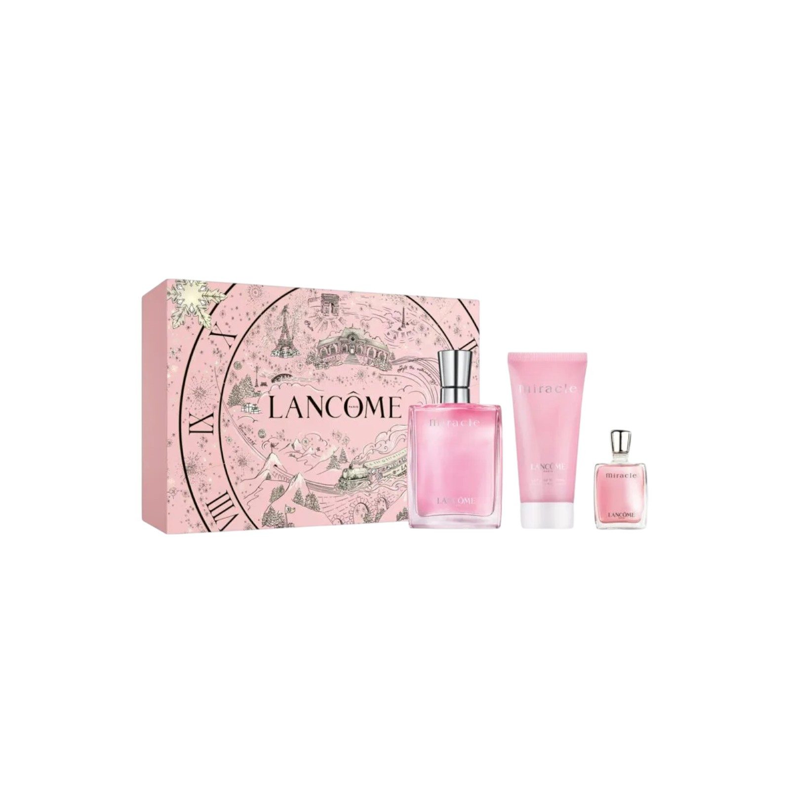 Feiern Sie diese Weihnachtszeit mit der Magie von 90 Jahren Lancôme. Das exklusive Geschenkset aus der limitierten Weihnachtskollektion wurde von der französischen Künstlerin Safia Ouares gestaltet – im ikonischen Lancôme-Pink und mit festlichem Flair. Jede Box ist ein kleines Beauty-Juwel, ideal zum Verschenken oder Selbstverwöhnen. Das Set enthält den strahlend femininen Duft Miracle Eau de Parfum in zwei Größen (30 ml + 5 ml) sowie die passende Miracle Body Lotion (50 ml) für ein harmonisches Dufterlebnis. Miracle steht für Lebensfreude, Frische und elegante Sinnlichkeit – perfekt, um in der festlichen Jahreszeit zu glänzen. Inhalt im Set: Miracle Eau de Parfum (30 ml) Miracle Eau de Parfum Miniatur (5 ml) Miracle Body Lotion (50 ml)