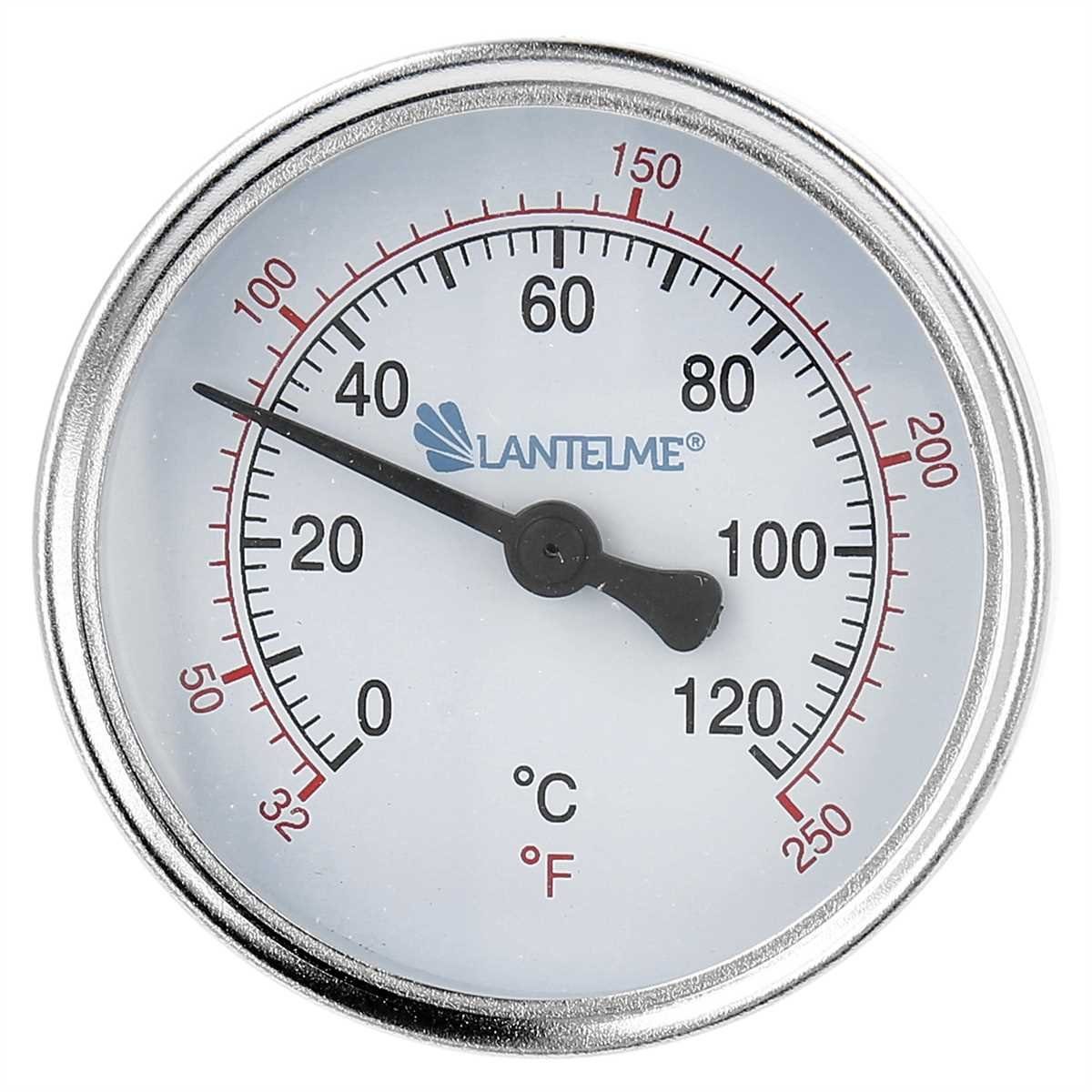 Lantelme Heizungsthermometer mit farbiger Skala für Heizung, Pufferspeicher, Warm- Kaltwasser, Boiler, Heizungsanlagen, Öltank und Klimaanlagen. Gemessen kann jede Art von Flüssigkeit oder Dampf. Der Temperaturbereich liegt bei unseren Heizungsthermometern bei 0 Grad bis + 120 Grad Celsius und 32 bis 250 Fahrenheit. Die Temperaturskala ist mit großen Zahlen zum leichten ablesen ausgestattet. Das Heizungsthermometer verfügt über eine Sonde die die Temperatur mittels Bimetall an die Skala weiter gibt. Das Gehäuse unseres Thermometers besteht aus verzinktem Stahlblech mit einem Anzeigedurchmesser von 6,3cm. Die Skala wird dabei durch eine Schichtscheibe aus Instrumentenglas geschützt.