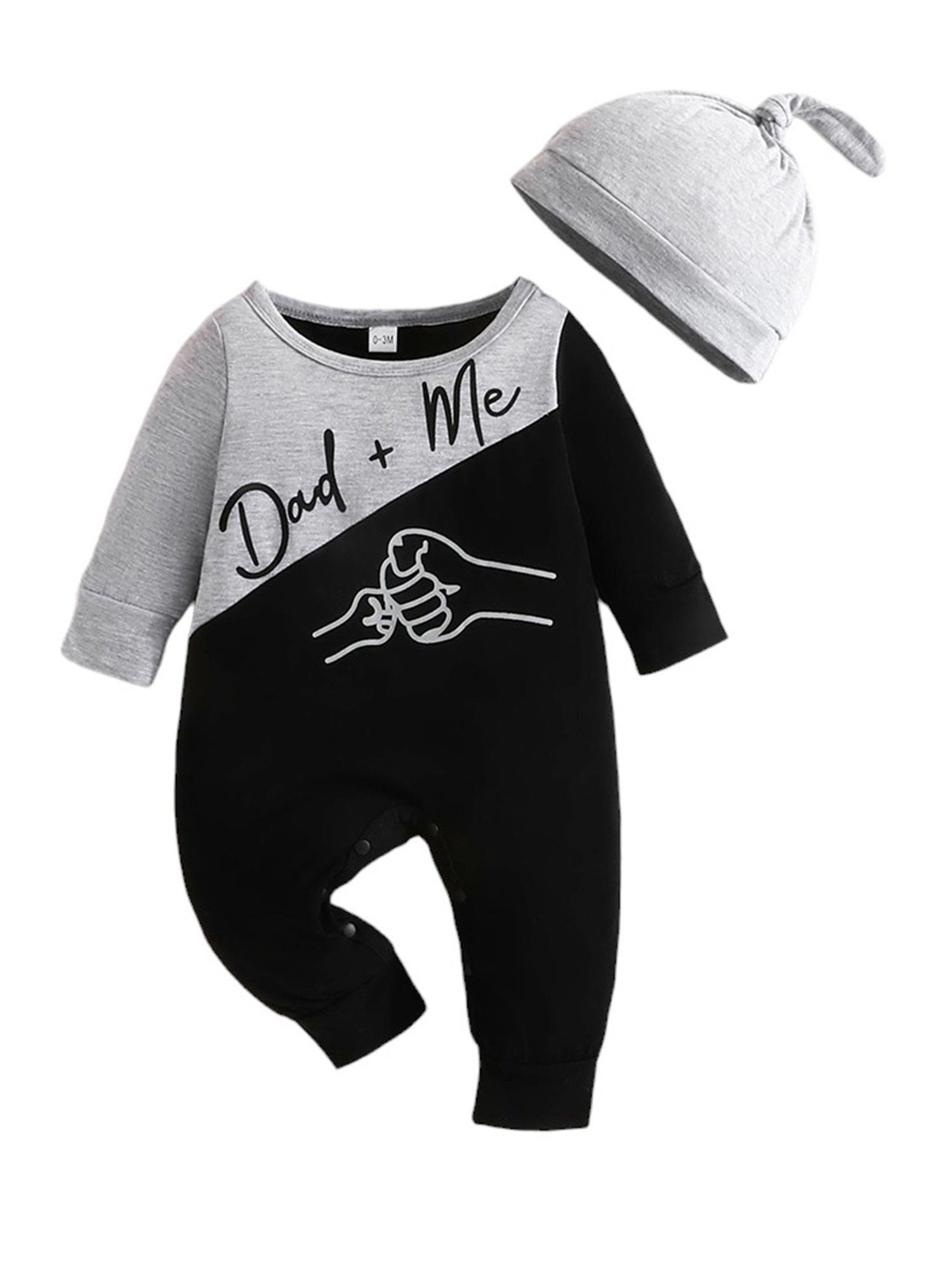 Das Set beinhaltet einen Overall und eine Mütze. Der Overall hat einen Rundhalsausschnitt, einen langärmligen Schnitt und Druckknöpfe im Schritt für einfaches Windelwechseln. Der Buchstabendruck ist sehr clever, "Dad + Me", die Beziehung zwischen Papa und Baby besteht nicht nur aus Vater und Sohn, sondern auch aus Freunden.