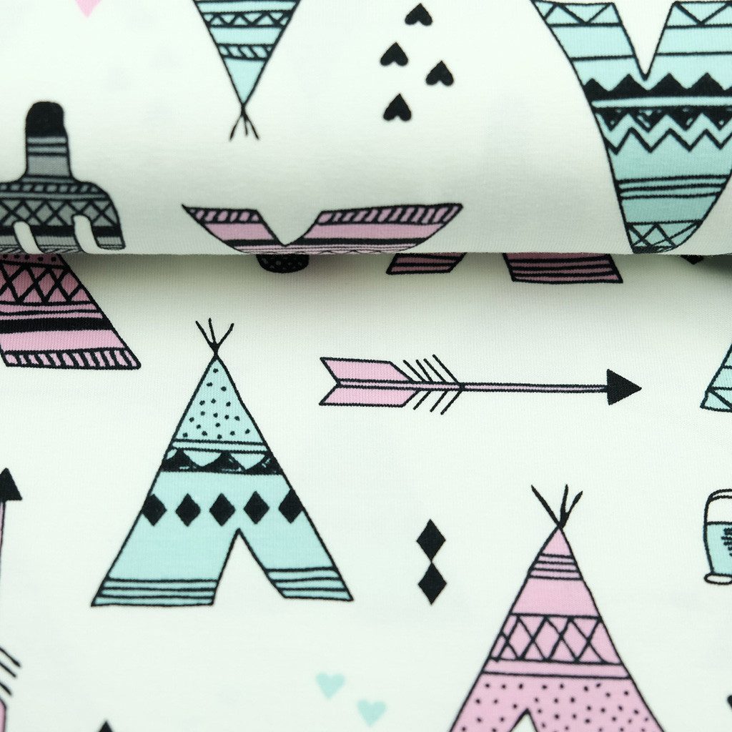Farben: weiß, türkis, rosa Material: 95% Baumwolle 5% Elasthan Breite: 150 cm Gewicht: 210 g/m2 Merkmale: elastisch, geeignet für Shirts, Hosen, Röcke Waschempfehlung: 30 Grad
