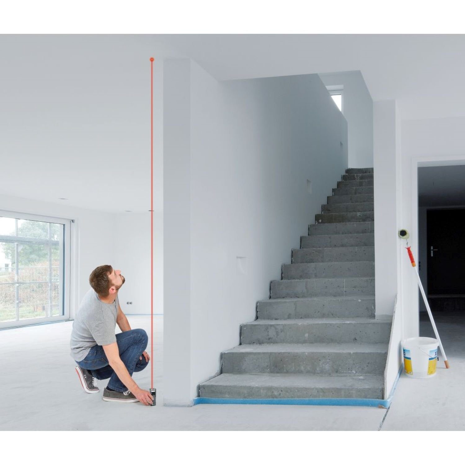 Der punktgenaue Laser-Entfernungsmesser ist ideal zum Erfassen von Длинаn, Flächen und Volumen, beispielsweise bei dem Ermitteln von Raumgrößen und Kalkulieren von Materialmengen. Per 360°-Neigungssensor lässt sich waagerechte und senkrechte Distanz bestimmen. Das Gerät verfügt über umschaltbare Messebenen, ein beleuchtetes, dreizeiliges Display und ein ergonomisches Gehäuse mit Schutzgummierung. Über die Digital Connection-Schnittstelle können die Messdaten einfach auf das Smartphone übertragen werden.