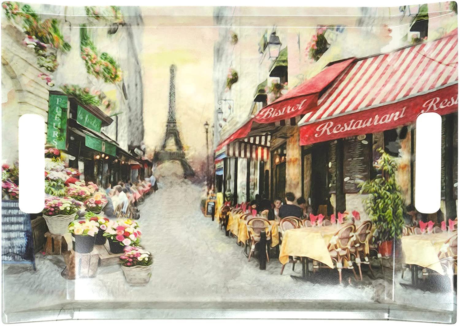 Nicht nur praktisch, auch optisch weiß unser modernes Melamintablett zu begeistern. Im Hintergrund der Eiffelturm und im Vordergrund eine verträumte Gasse, so präsentiert sich das Tablett Motiv Paris. Dank der leicht glänzenden Oberfläche erweckt unser großes Picknicktablett den Eindruck von Keramik.