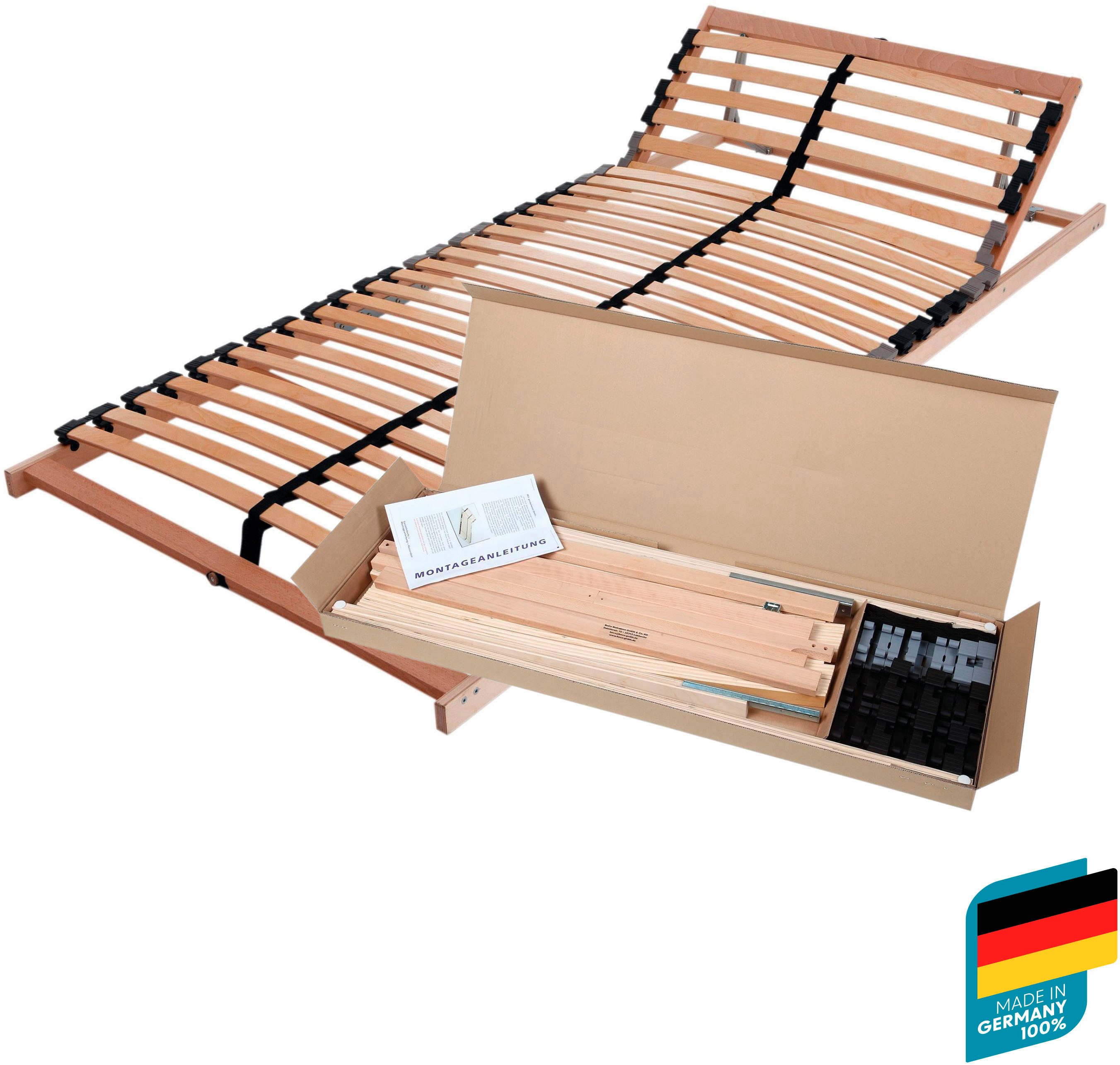 Besondere Hinweise | Für die Kompatibilität mit handelsüblichen Bettgestellen werden Lattenroste knapp unterhalb der gängigen Bettenmaße gefertigt. Die Lattenroste werden entsprechend der Norm DIN EN 1725:1998-2 gefertigt. Beispiel: Bettenmaß ca. 90x200 cm = Rahmenmaß ca. 89x196 cm. |